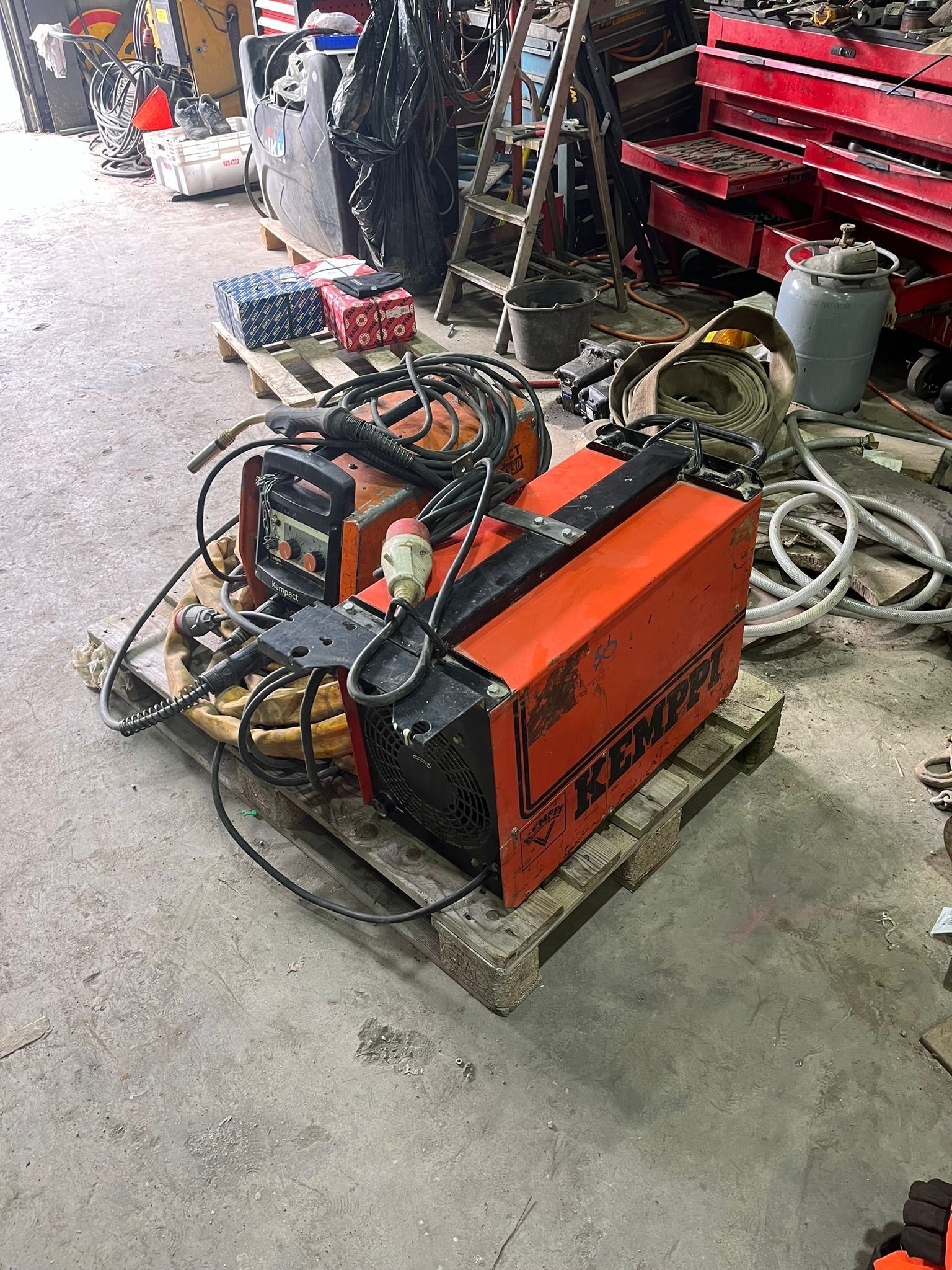 Varusteet: Vesijäähdytteinen TIG-poltin, maakaapeli ja kuljetusvaunu