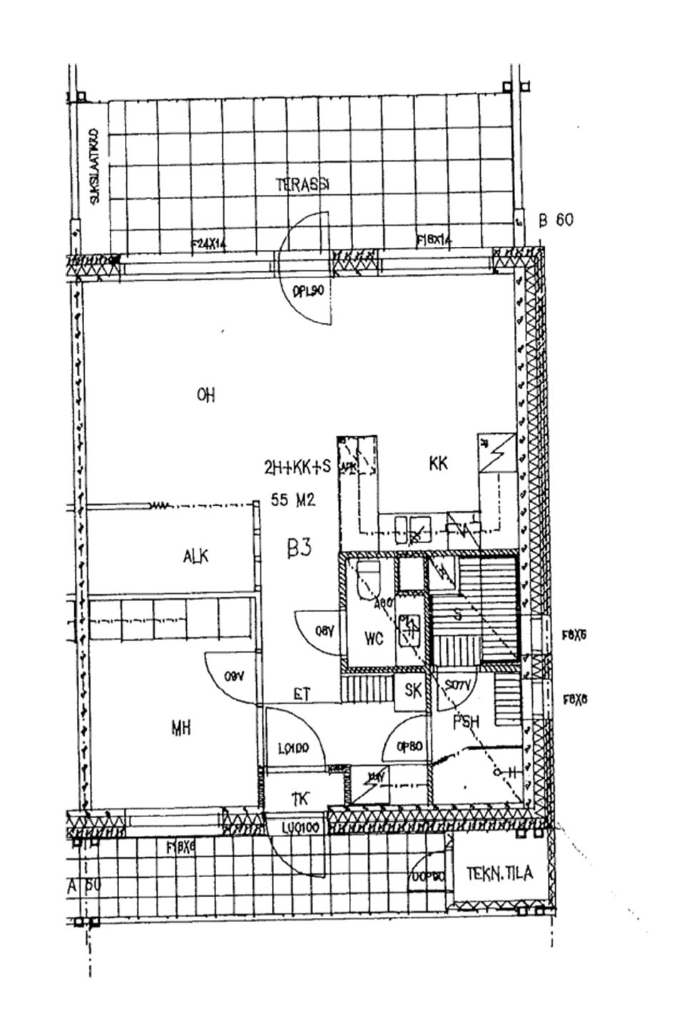 Huoneisto B3 / 2h+k+s / 55m2 / 1.kerros