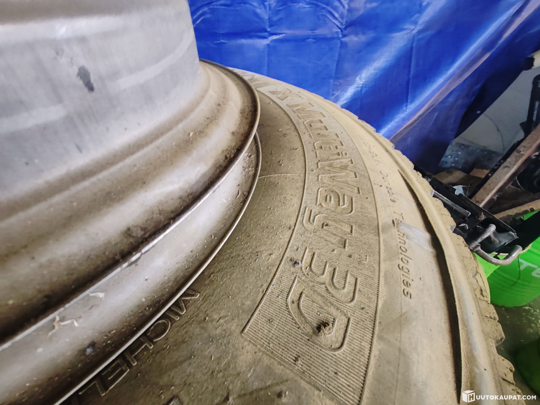 Renkaat on käytetyt, ja kyljissä on murtumia.