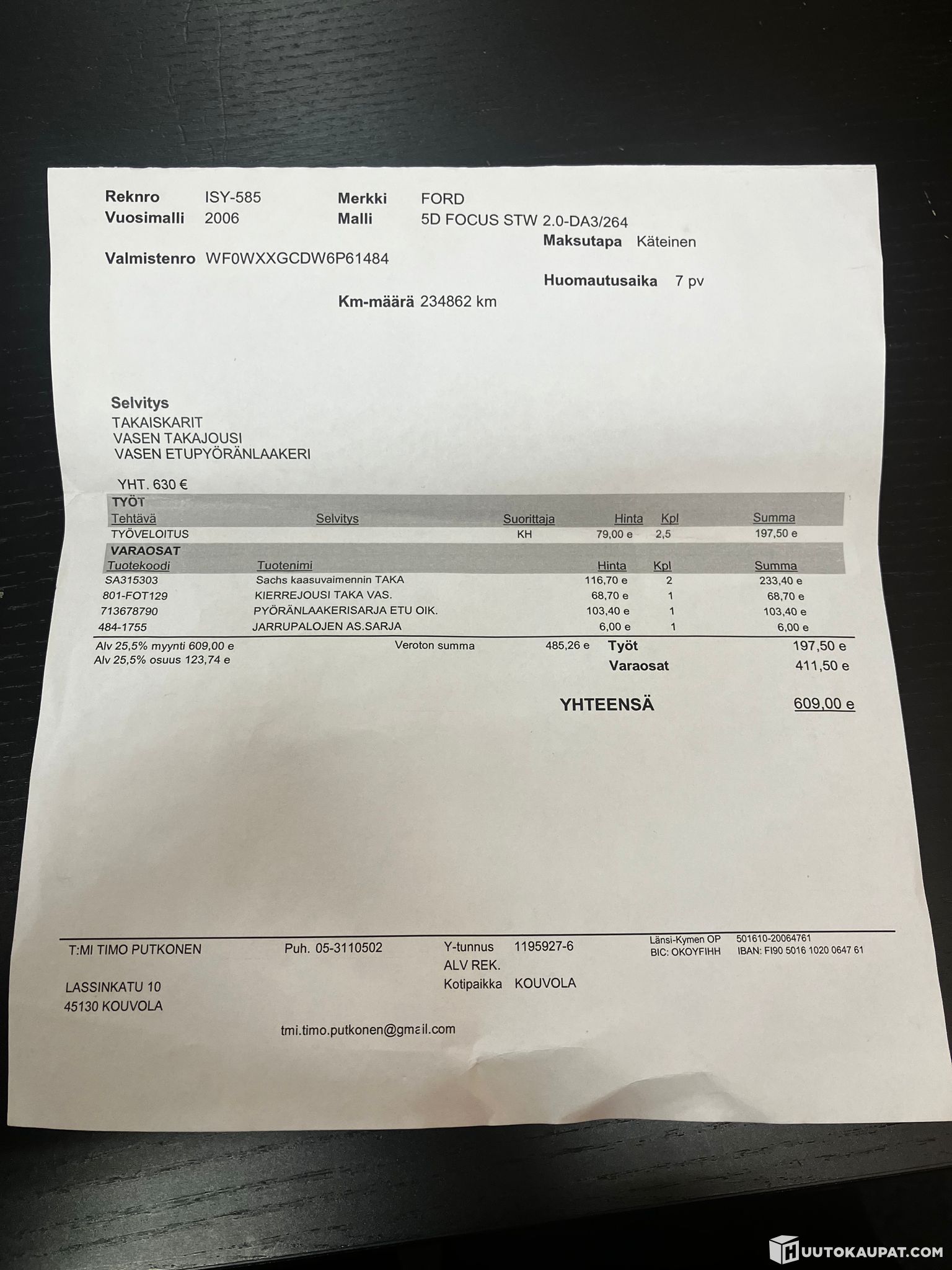 Autohuolto kolehmainen ilmoittaa, Huutokaupat.com myy