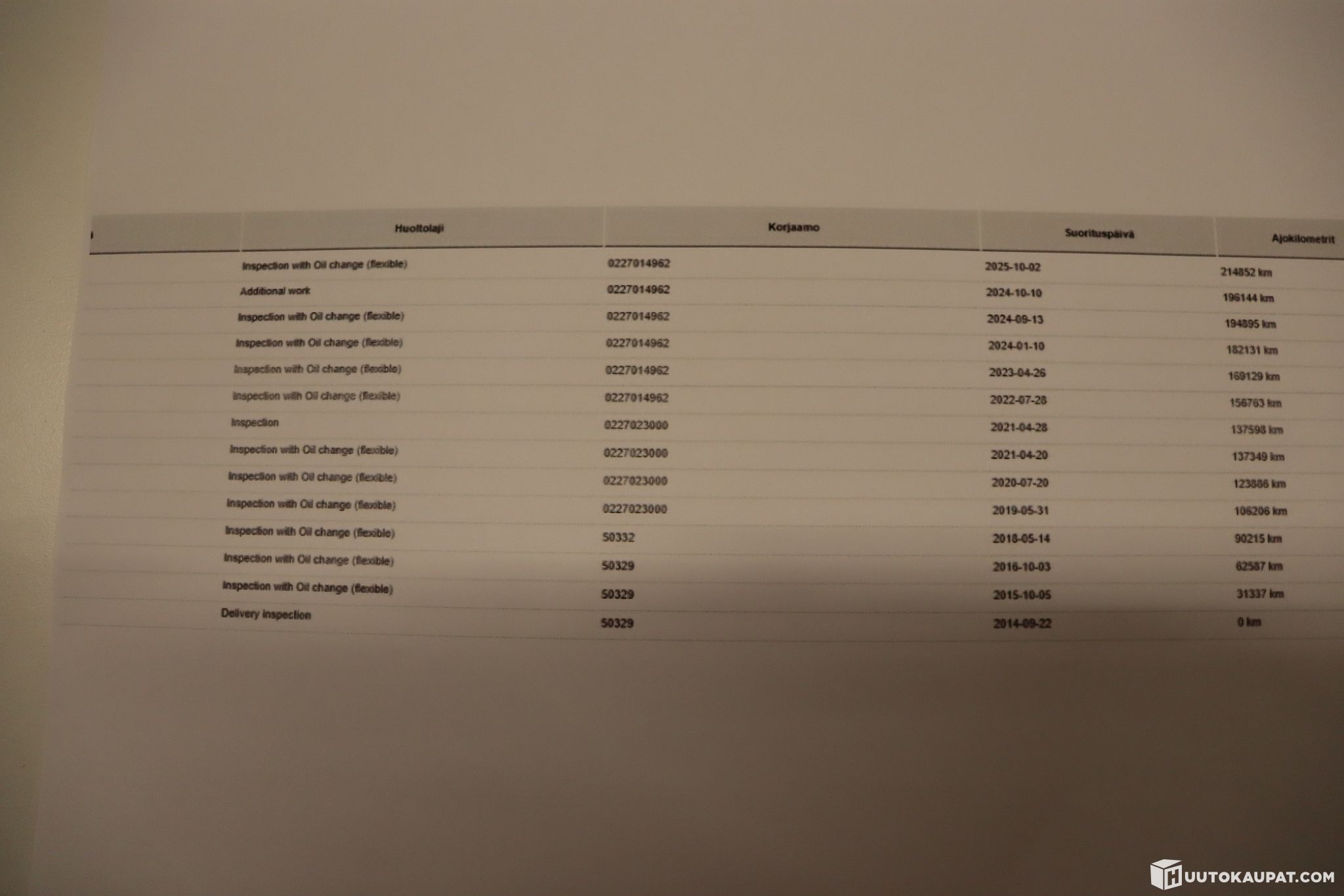 Huoltokirja todella hyvin huollettu
