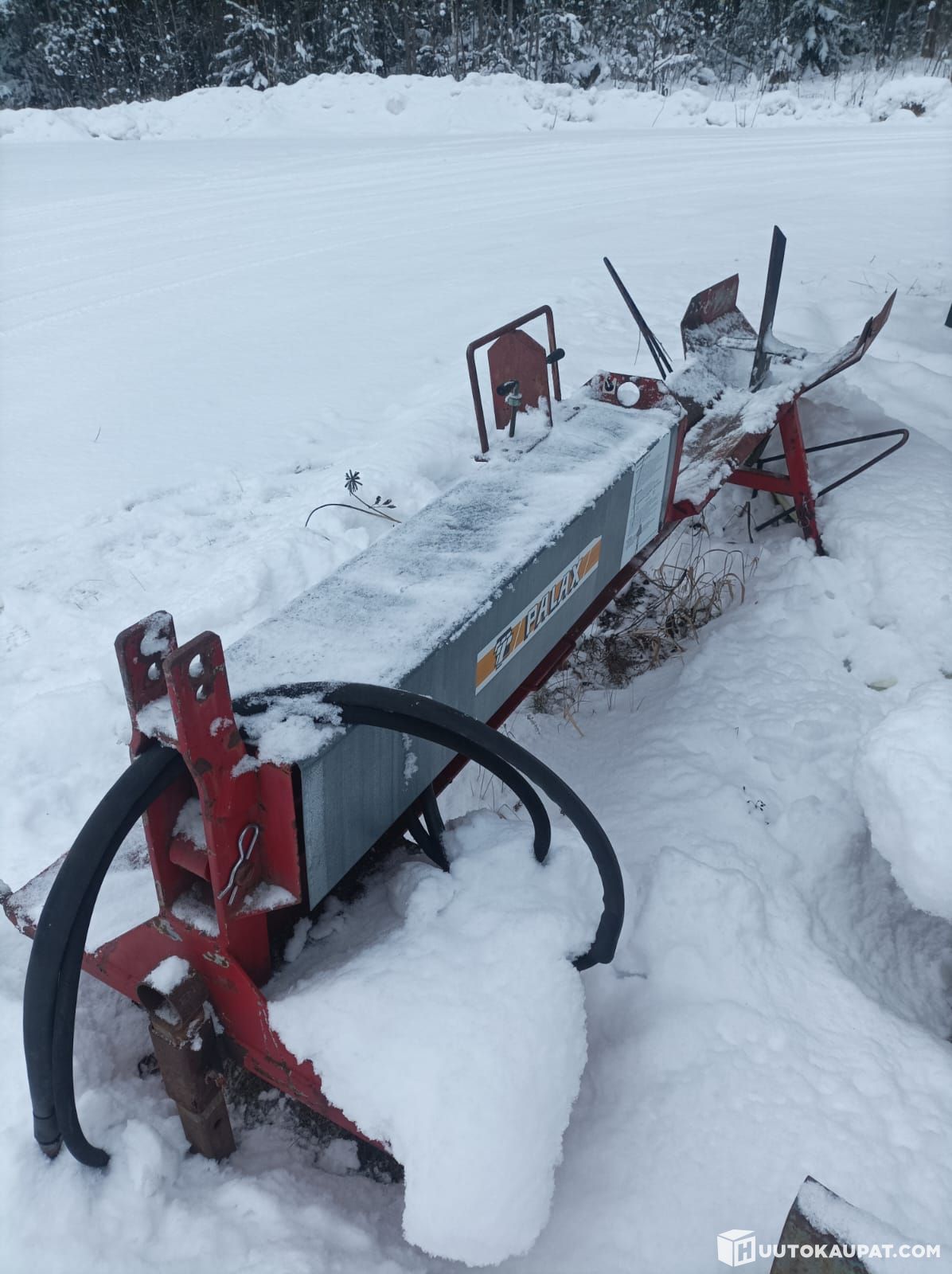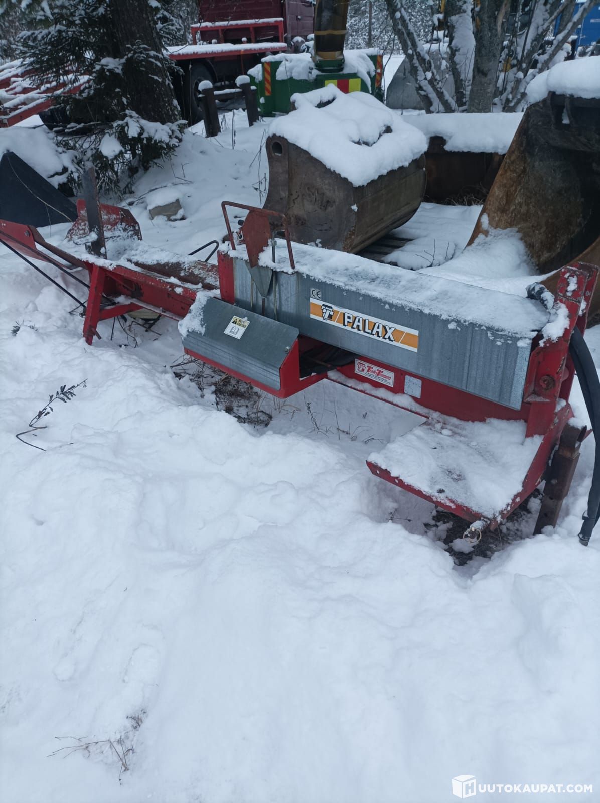 Toimiva hydraulihalkoja traktorin hydrauliikalla. Reilun metrin pituiselle puulle.