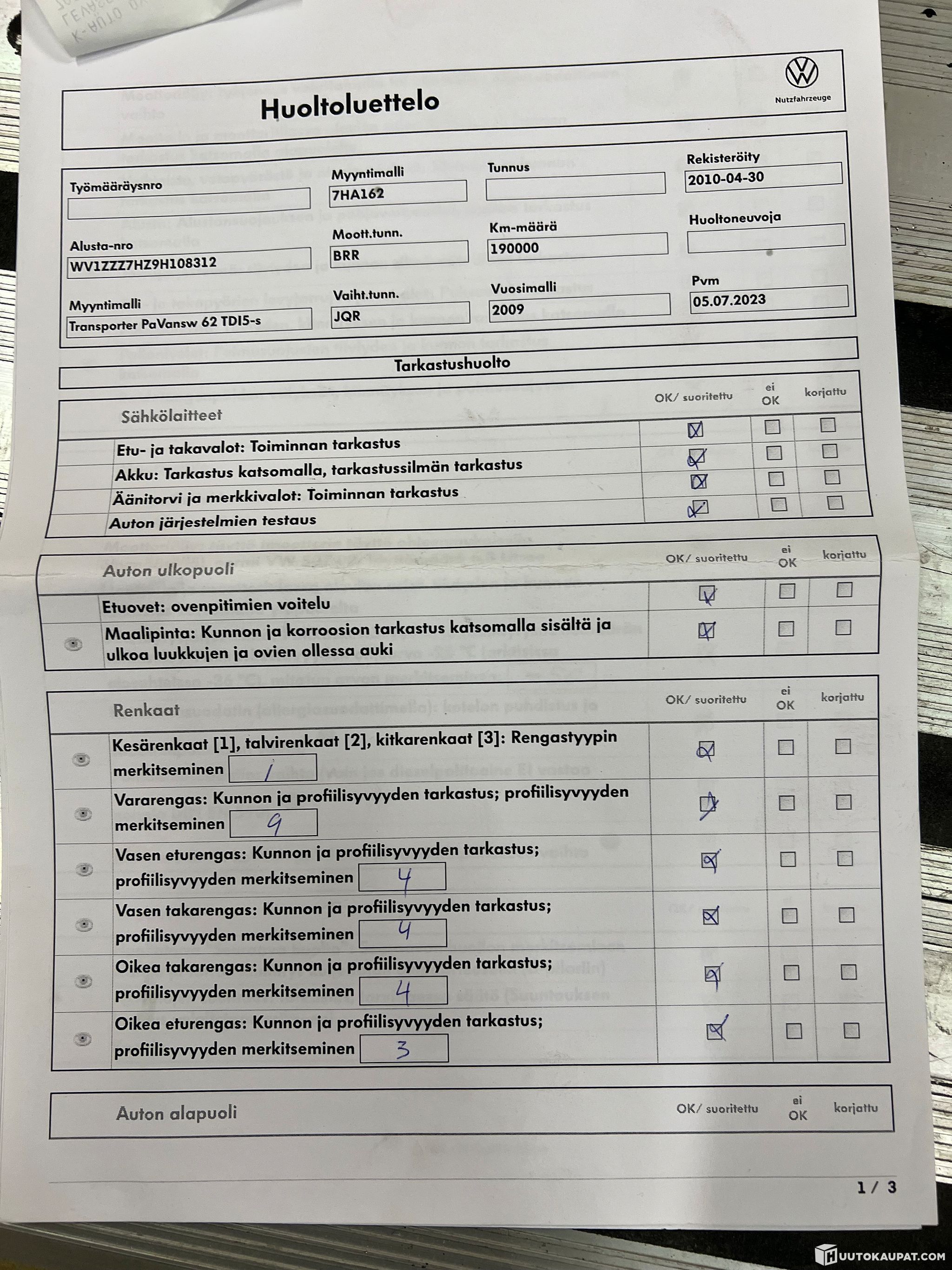 Hyvin pidetty ja teknisesti hyväkuntoinen Volkswagen Transporter – harvoin tarjolla näin hyvällä huoltohistorialla (kts. kuvat huoltokirjasta).
