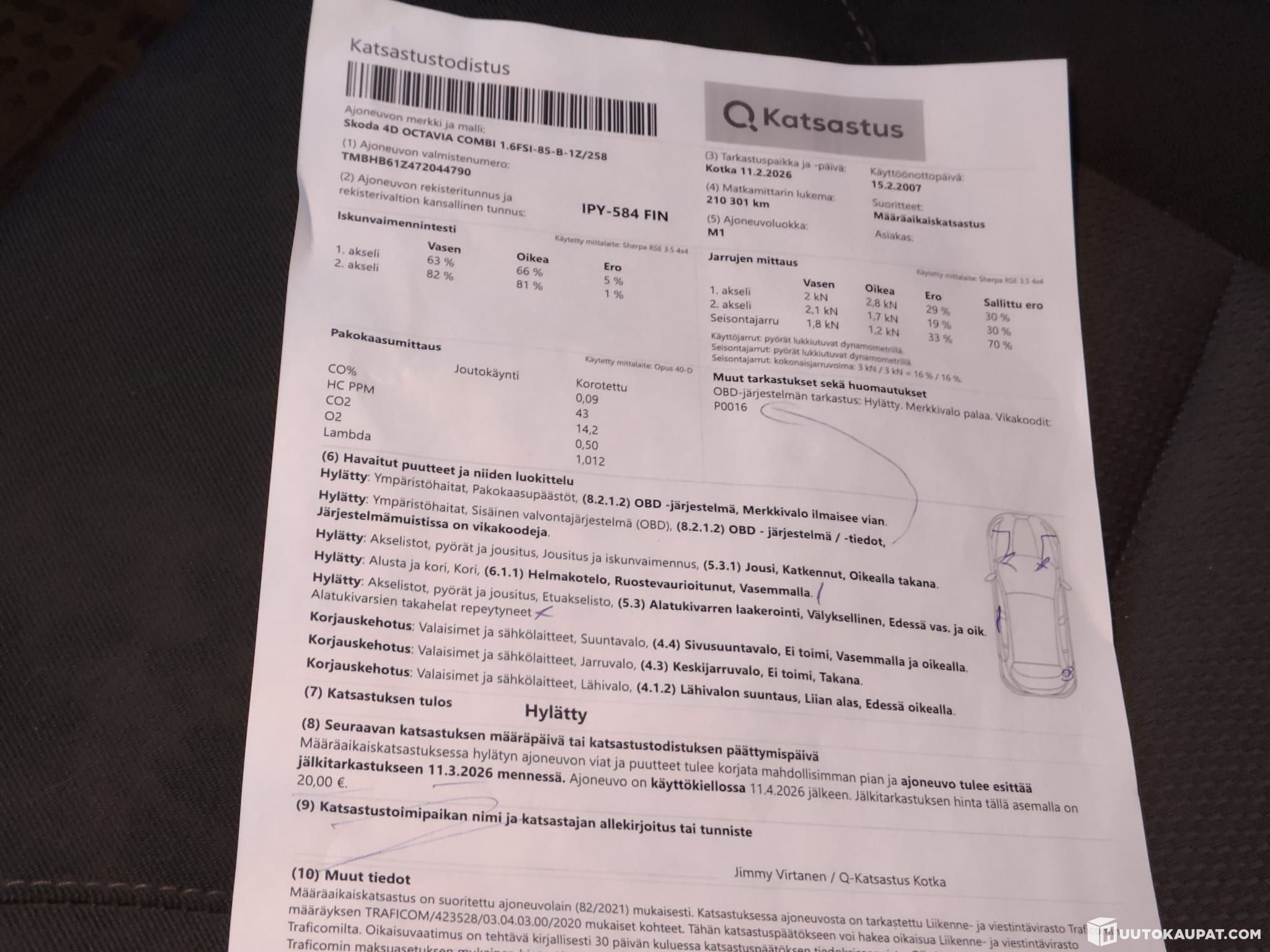 Ajettu juuri 200km tänne kuskin toimesta ilman ongelmia. Vikalista kuvissa. Tästä vielä hyvä auto pitkäksi aikaa leiman kautta