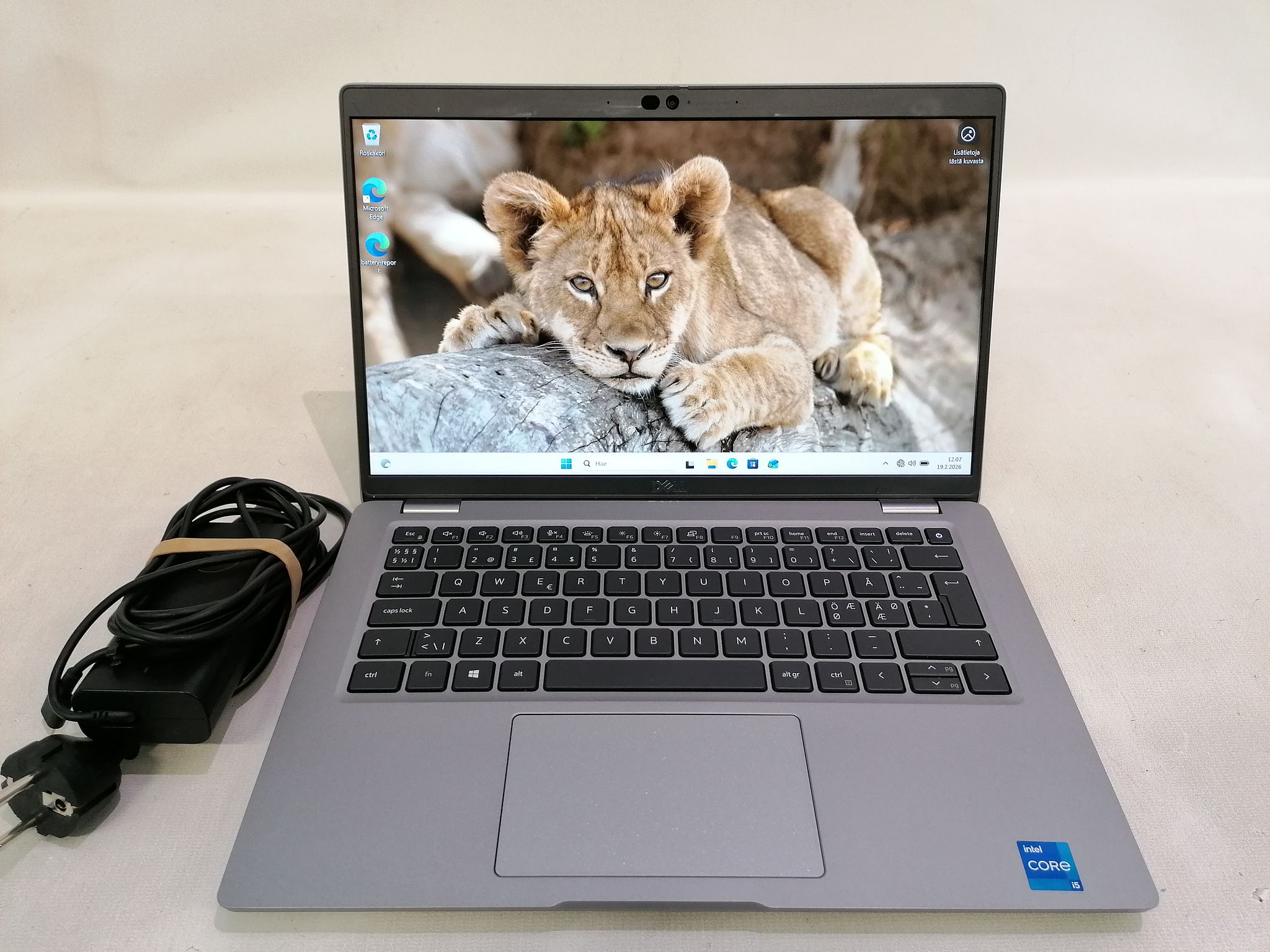 Akun kunto on noin 81 % alkuperäisestä kapasiteetista, joten laite soveltuu hyvin myös liikkuvaan käyttöön. Wi-Fi- ja Bluetooth-yhteydet sekä valmiiksi asennettu Windows 11 Home tekevät koneesta heti käyttövalmiin.