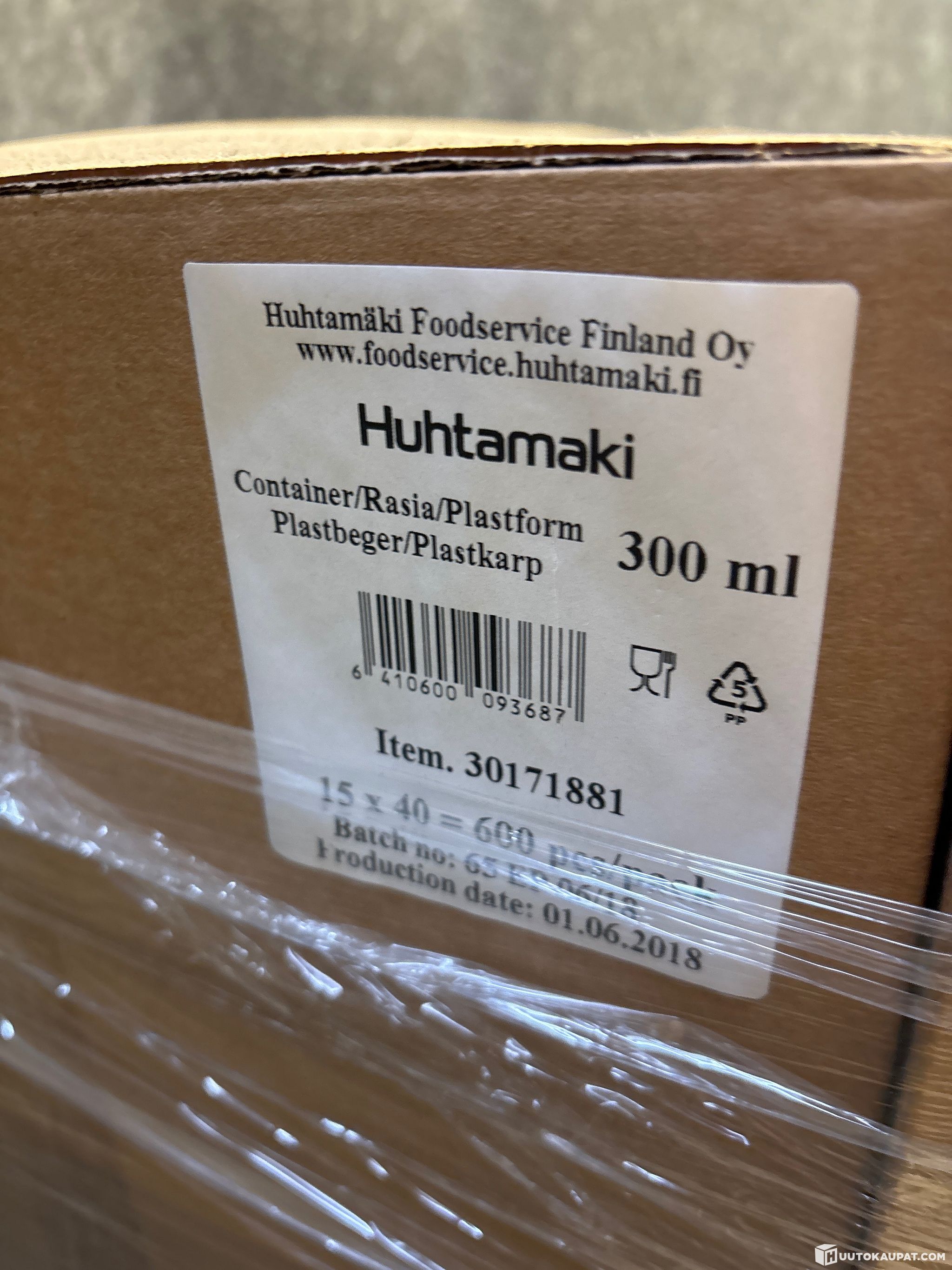 HUOMAA: muovirasioissa ei kansia! Yht. 12 laatikkoa 300ml rasioita (=600kpl per laatikko). Rasioiden max syvyys ~4cm.