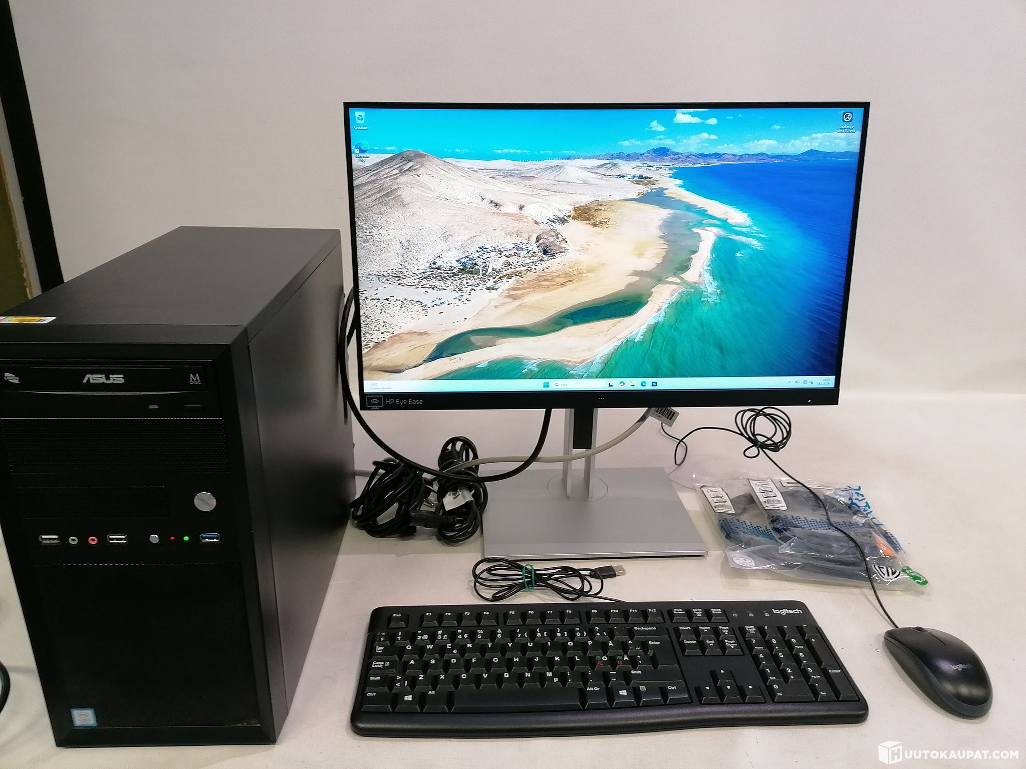 Alunperin yrityskäyttöön kasattu MT mallinen pöytäkone - Win 11 Pro + HP yritysnäyttö, näppäimistö, hiiri ja muuta