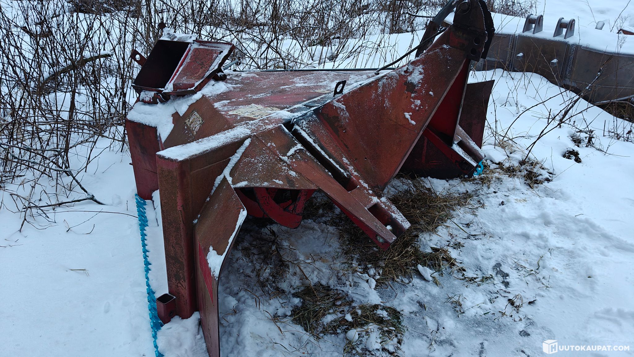 Rujo mutta toimiva. Takalaakeri vaihdettu v. 2023. On hitsattu, ja vahvistettu. Uudet terät, pari kertaa aurattu. Nuilla auraa pitkään. Keskiterät hitsattu. Ei tukijalkoja. Luukunvaihdon tanko poikki. Heittolavat elämää nähneet
