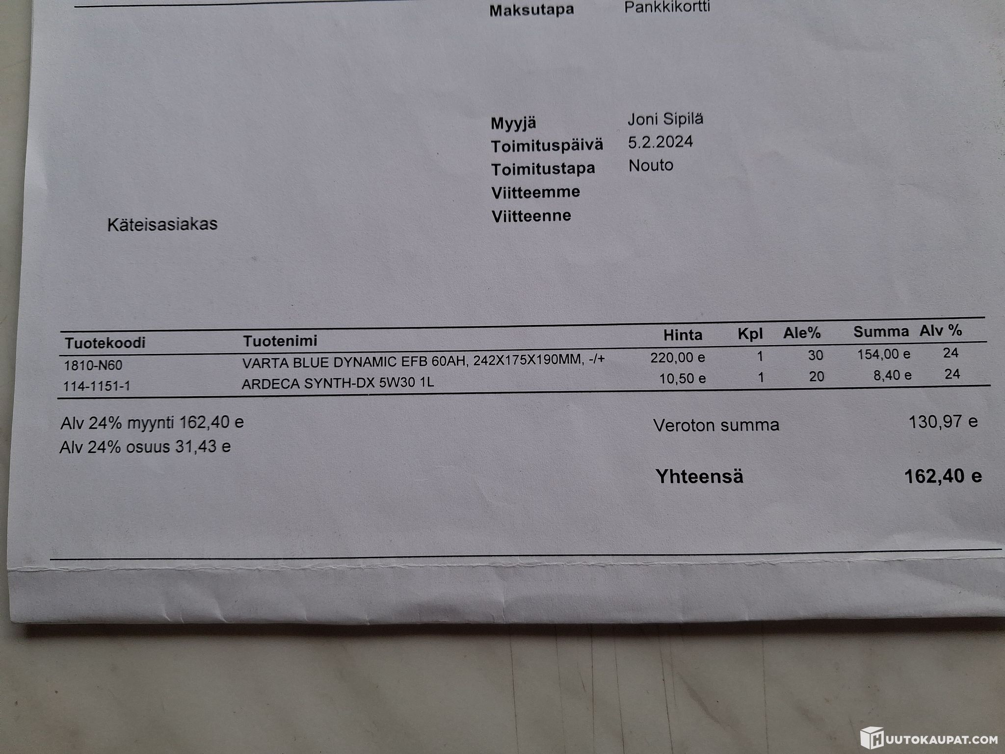 Yksityishenkilö ilmoittaa, Huutokaupat.com myy
