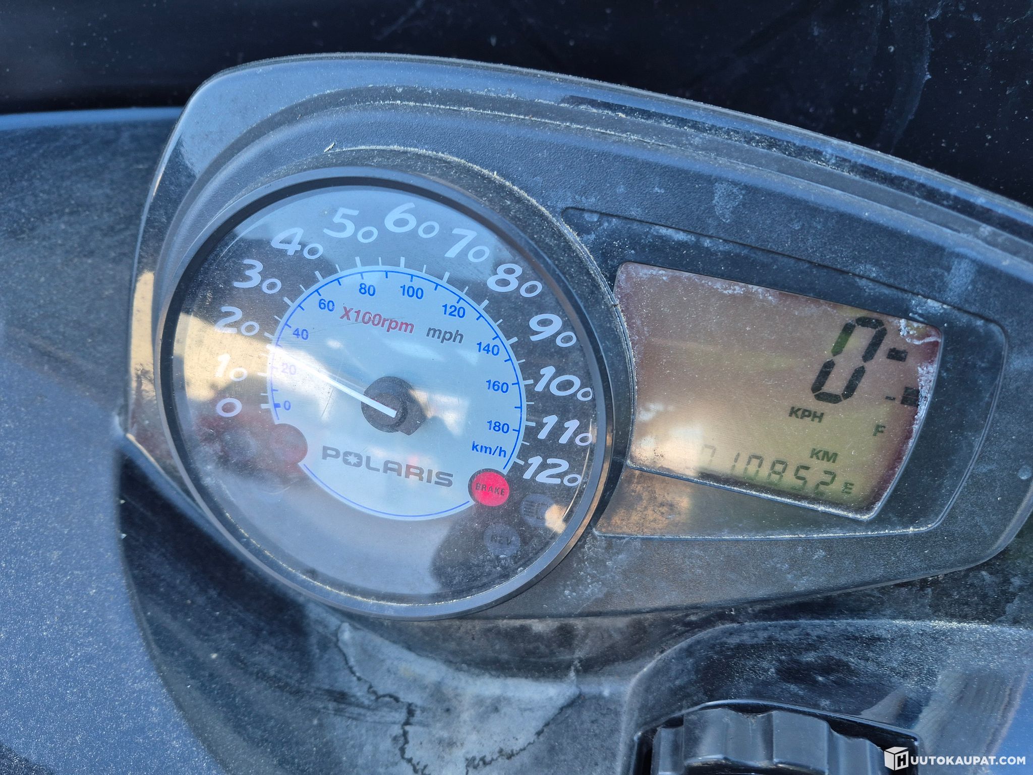 Pihalla koeajettu kelkka. Lähti käyntiin liikkui eteen ja taakse. 10852km mittarissa