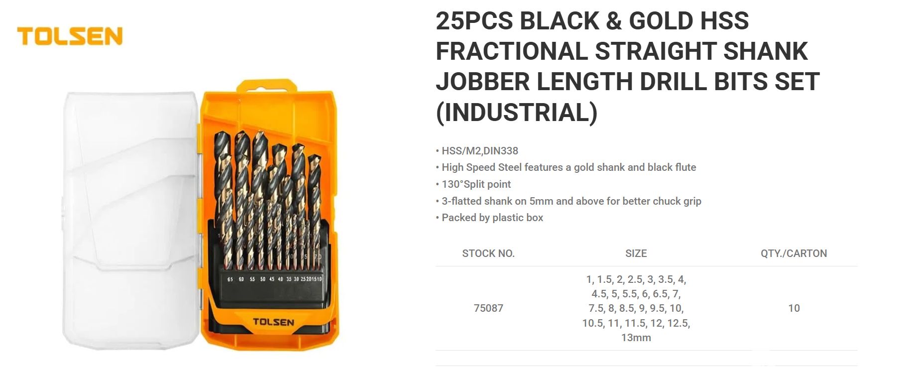 Tuote: 25PCS Black & Gold HSS Fractional Straight Shank Jobber Length Drill Bits Set Industrial
