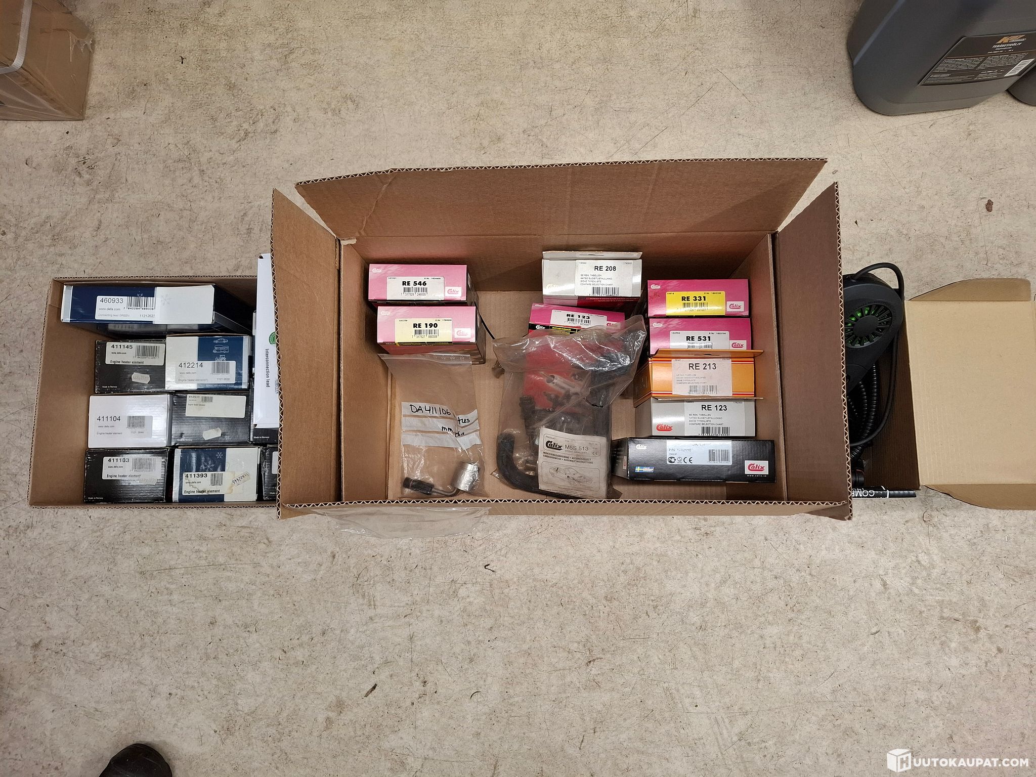 Erä Defa ja Calix lohkolämmittimiä, johtoja sekä sisätilanlämmitin. Tuotteet uusia / käyttämättömiä, tuotteista listaus kuvissa ovh hinnoin. Calix-sisätilalämmitinsarjasta puuttuu verkkoliitäntäjohto, siksi listaan laitettu kyseinen johto ja määräksi -1.