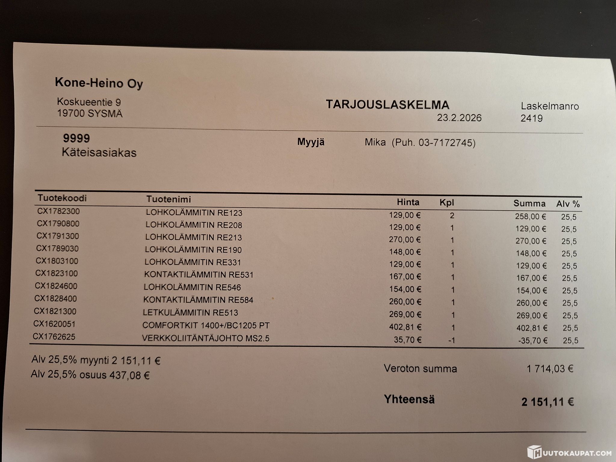 LVI-Palvelu Kurkinen Oy ilmoittaa, Huutokaupat.com myy