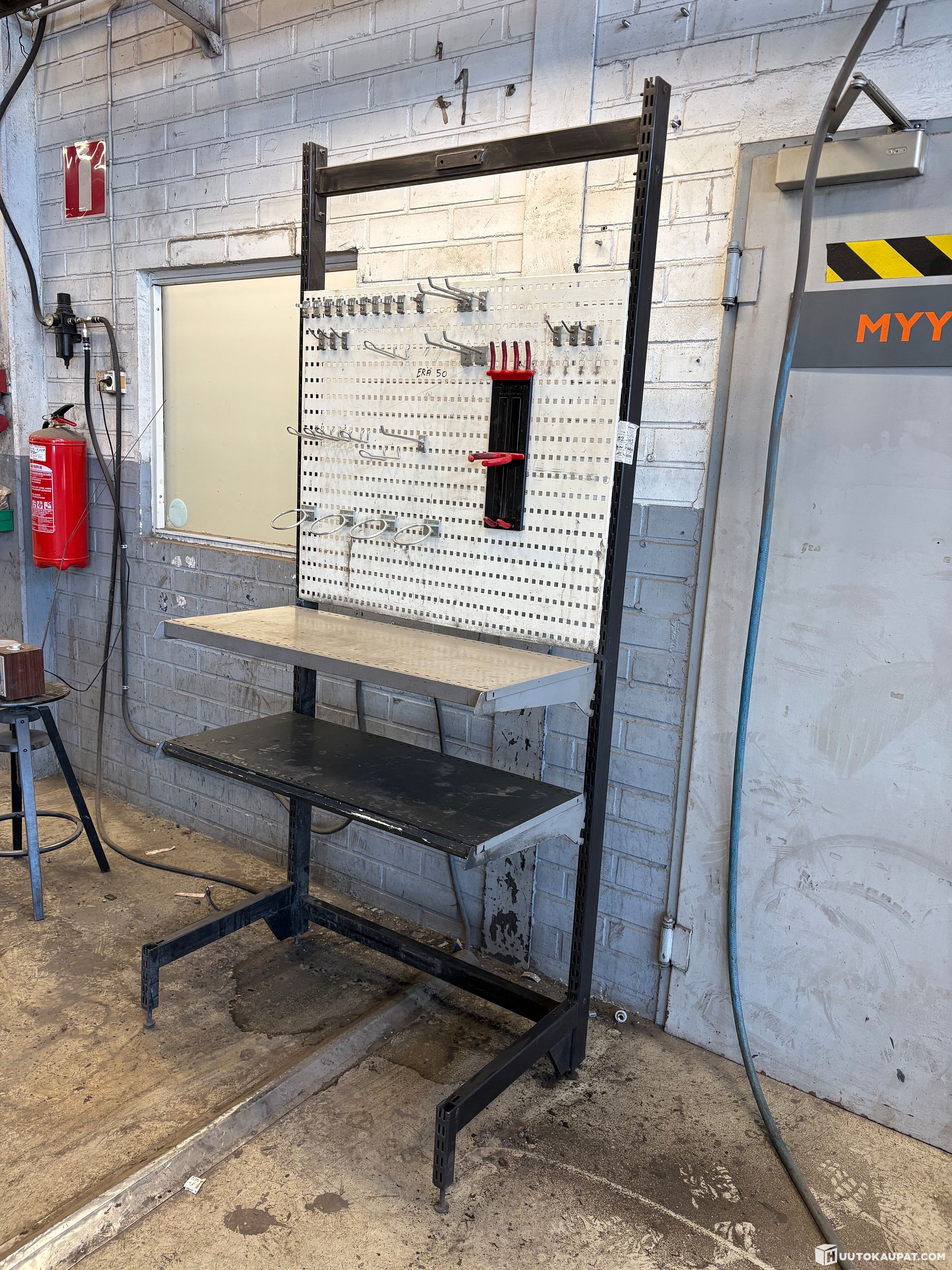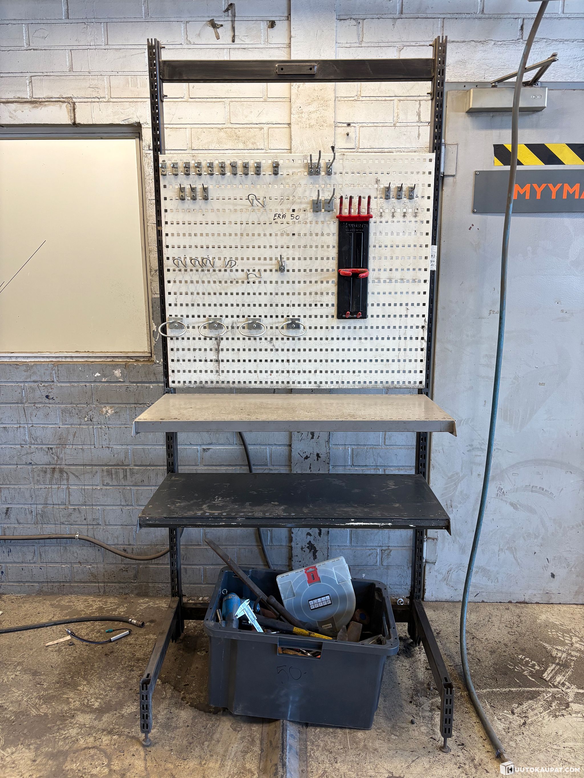 Autokorjaamon laitteita, Työkaluhylly ja laatikollinen työkaluja, Erä 50