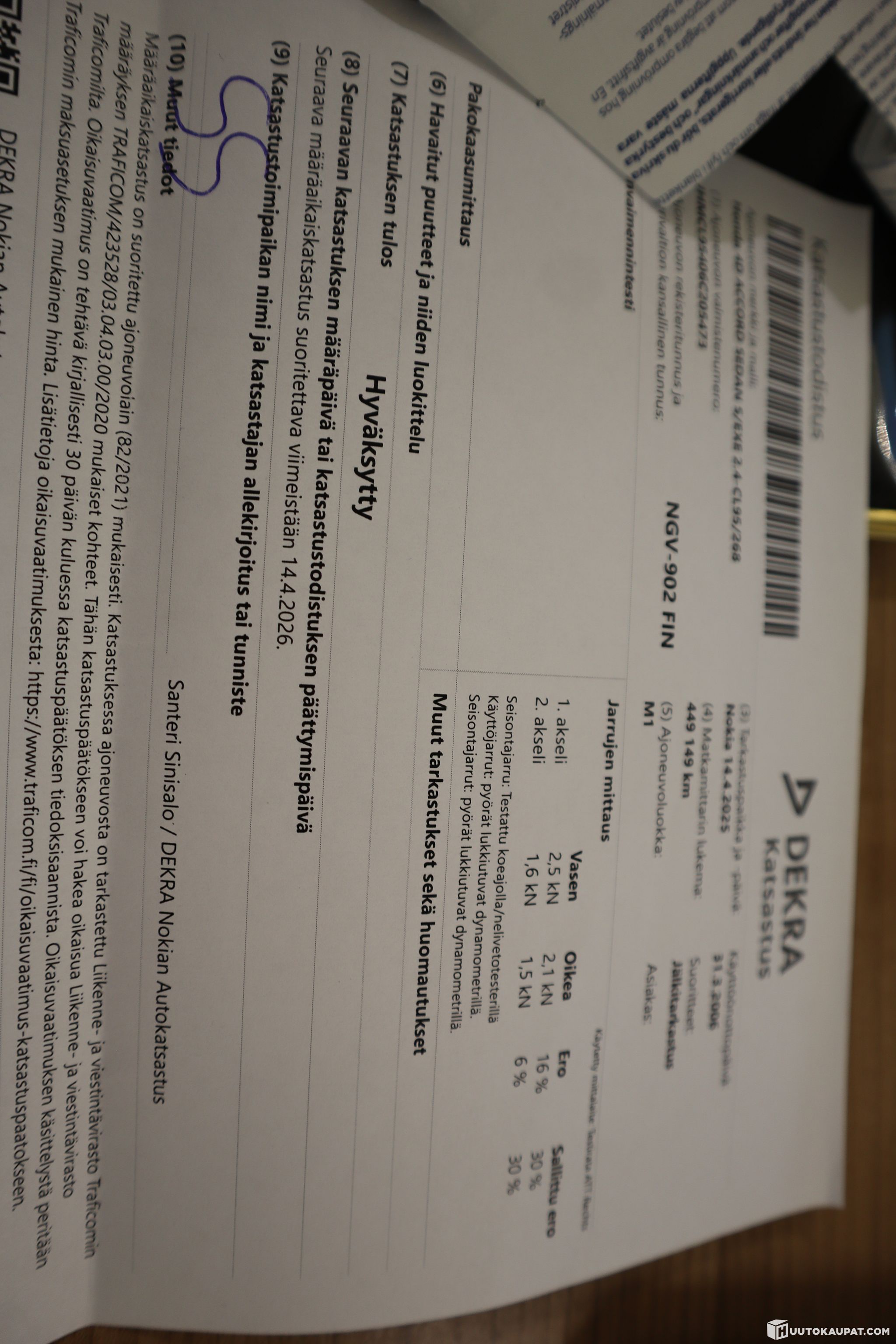 Auto ajettu Raumalle n. 200km. päästä. Meillä ei ole tehty teknistä tarkastusta.
