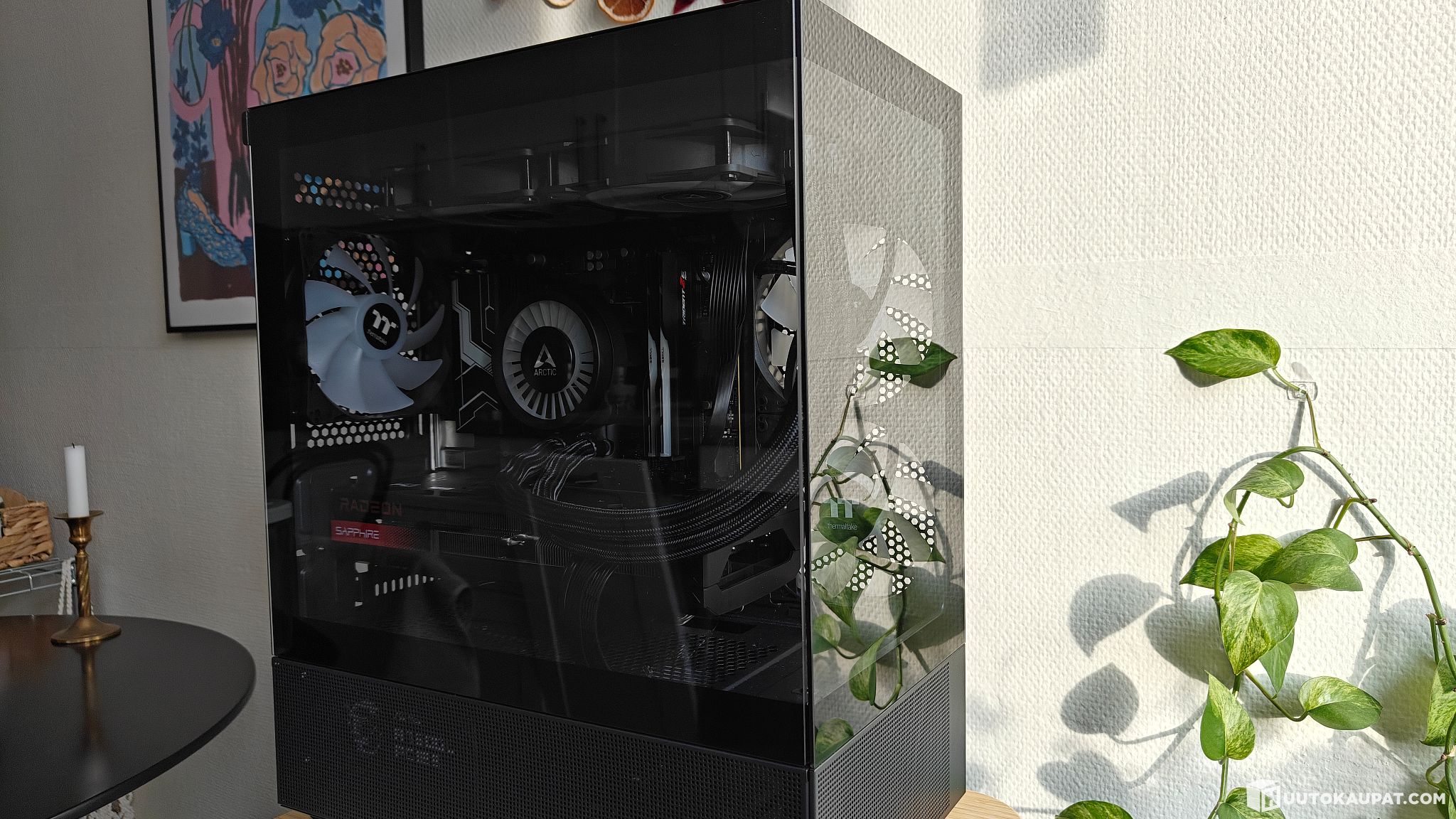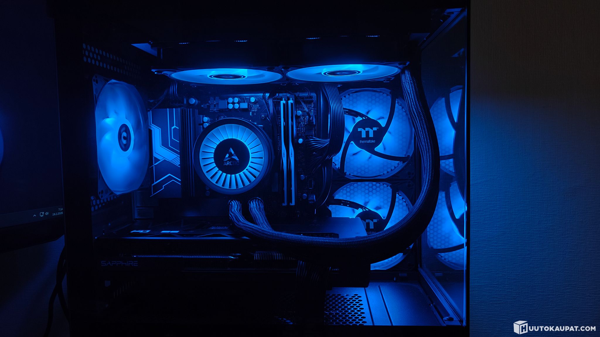 Tietokone on kasattu 2025 maaliskuussa, jolloin otin siitä kuvat verkkosivuja varten. Tuote on täysin käyttämätön kasaamisen jälkeisten toimivuustestien jälkeen, ja on ollut varastossa kotelon pakkauksessa. Toimivuus ja lämpötilat ovat myös testattu uudelleen ennen myyntiin laittoa.