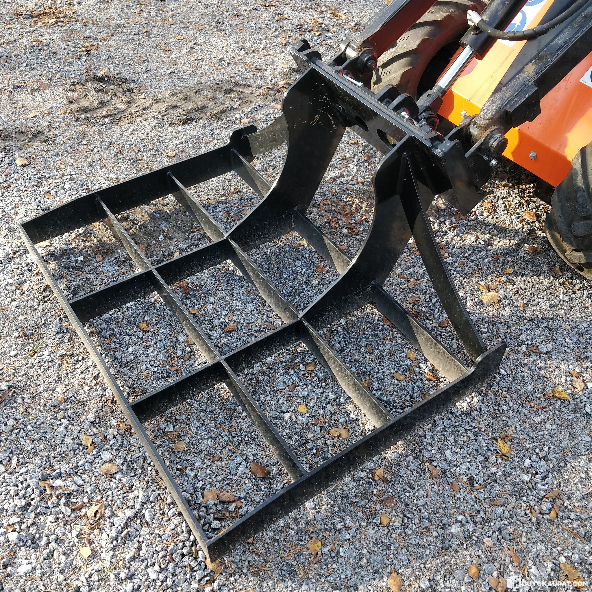 Tasoitusritilä pienkuormaajalle. Testattu, käytön jälkiä.