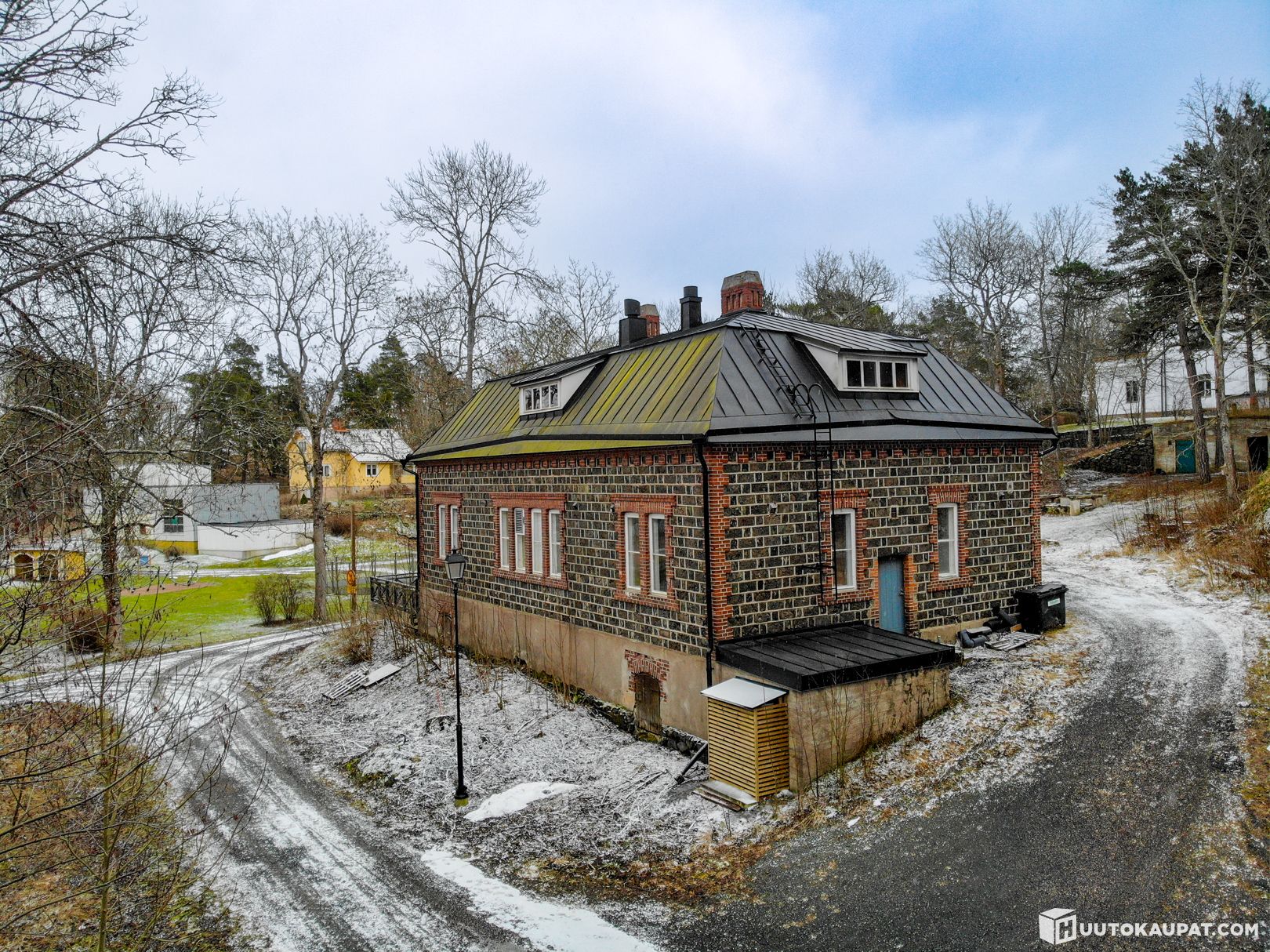 Övre våningen är nyligen färdigställd och erbjuder ljusa och trivsamma bostadsutrymmen. Här finns ett vardagsrum, ett öppet kök, ett sovrum och ett badrum. Byggnaden är belägen på en egen 3 780 m² tomt på en central plats i Dalsbruks parkområde. Byggnadens fasad är skyddad, vilket ytterligare betonar dess historiska betydelse. De vackra slagstensväggarna och de stora fönstren gör detta objekt till en riktig blickfångare. Den havsnära och idylliska miljön i Dalsbruk erbjuder fantastiska möjligheter för både företagande och boende. Gästhamnen, det goda serviceutbudet och de många evenemangen i området skapar en utmärkt grund för affärsverksamhet, och området är populärt både bland ortsbor och turister.