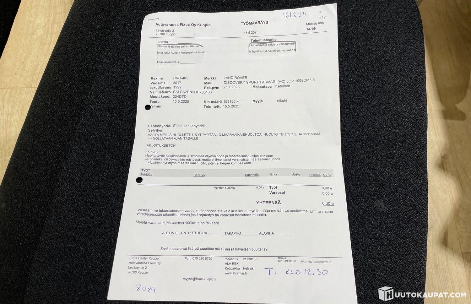 Huomioithan, että huutokauppaan osallistuminen ilman ostoaikomusta on kiellettyä. On sinun vastuullasi tutustua kohteeseen ja siitä annettuihin tietoihin ennen tarjoamista, tervetuloa myös tutustumaan autoon paikan päälle. Mikäli kohteesta herää mitä tahansa kysyttävää, olethan ystävällisesti yhteydessä meihin tai Huutokaupat.comin asiakaspalveluun, kiitos!