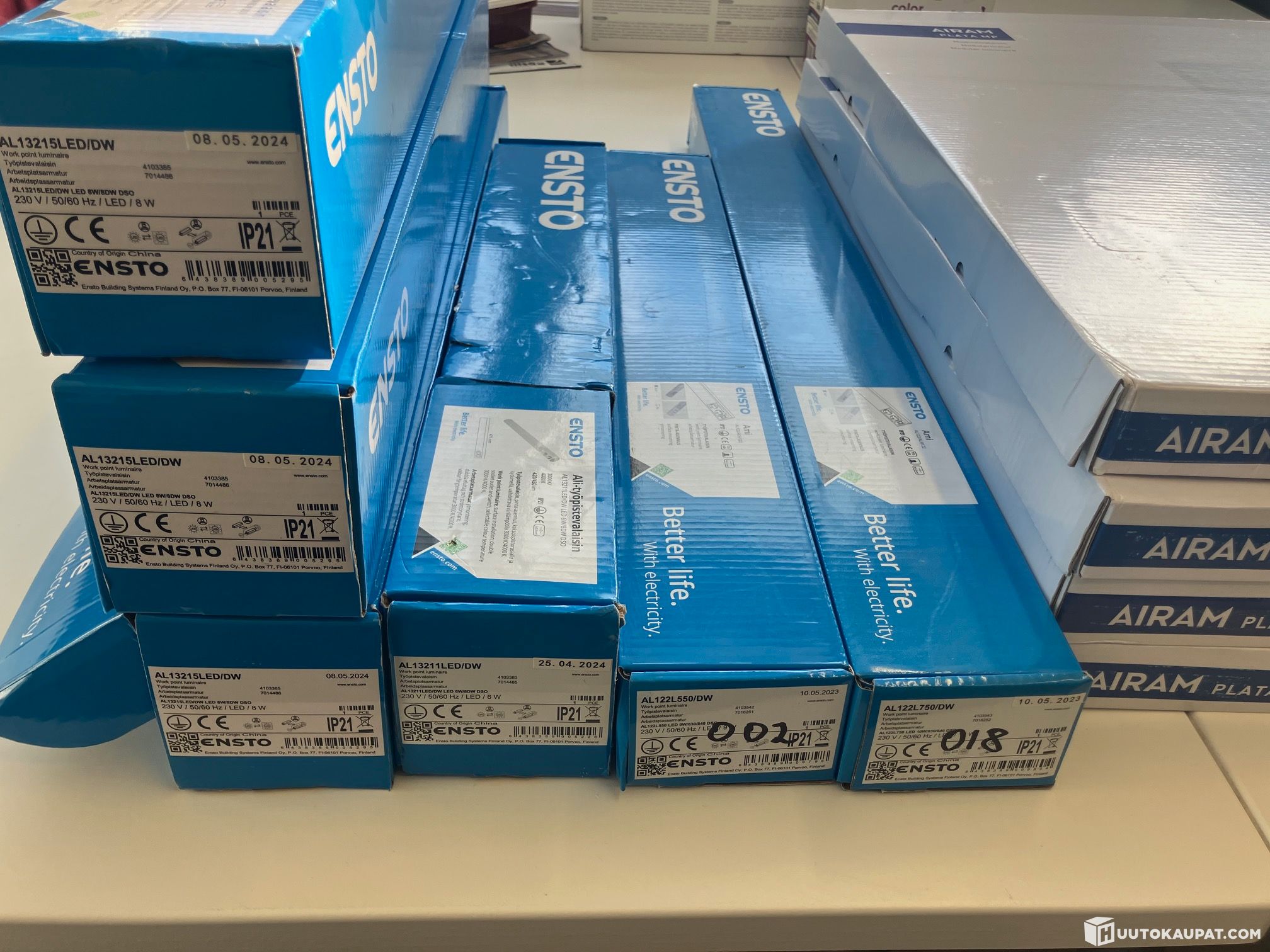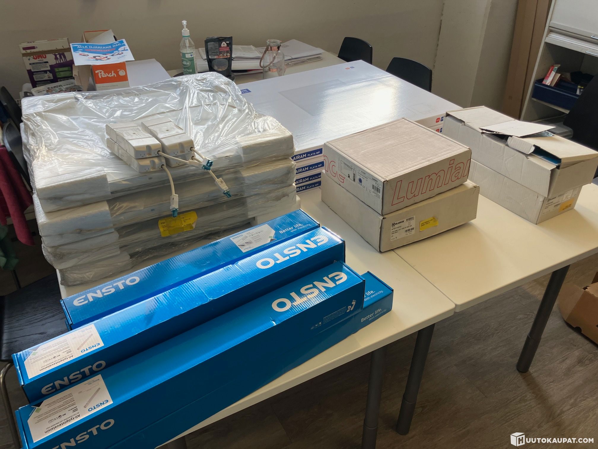Ensto Ali työpistevalaisimia 4kpl, pistorasioilla 3000K/4000K ja 2kpl Ensto Ami, pistorasioilla 3000K/4000K