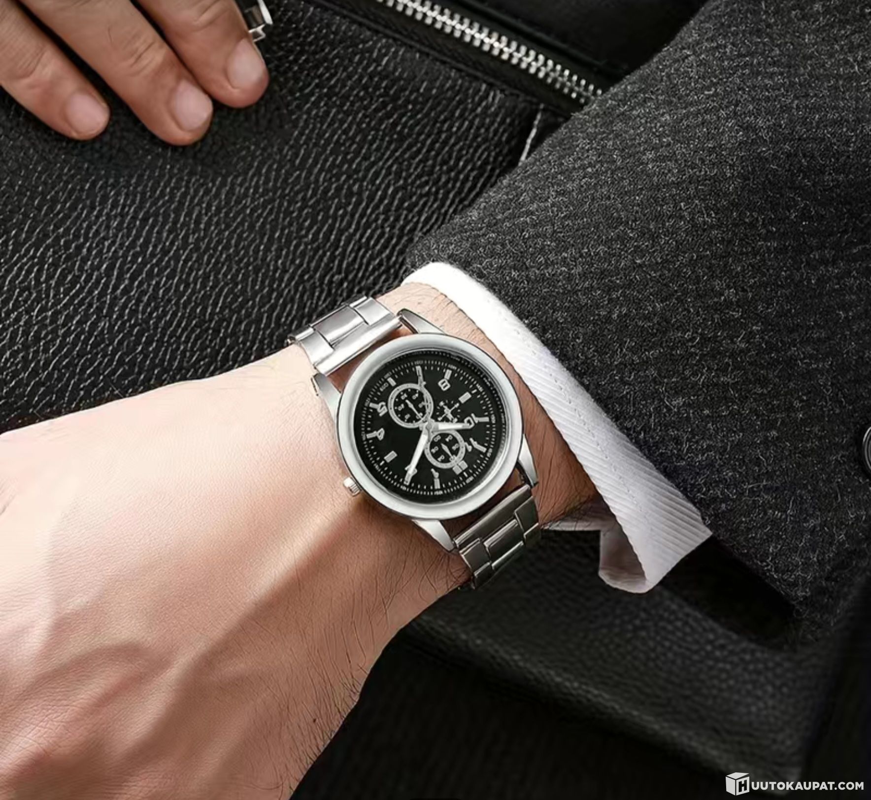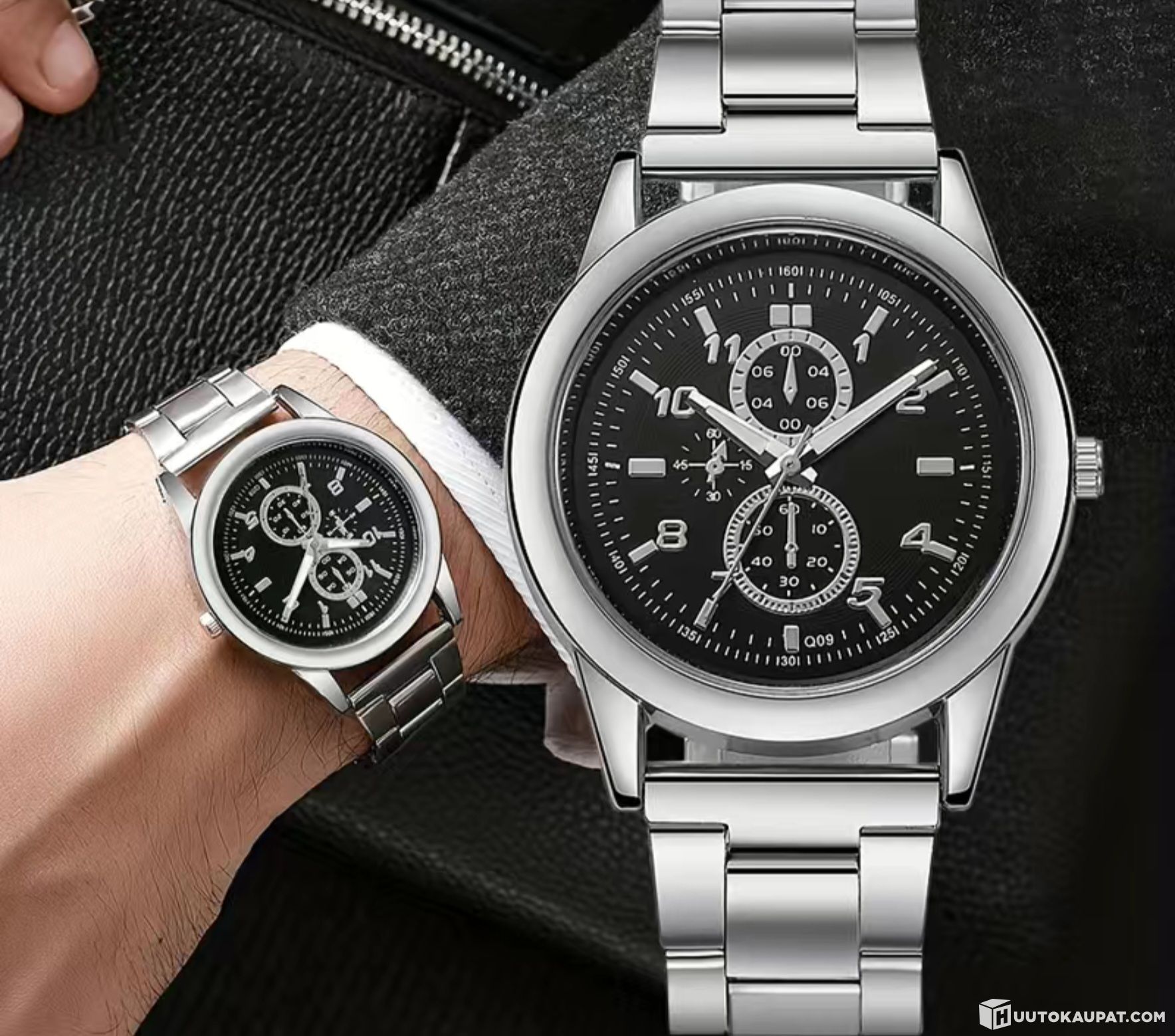 Tyylikäs ja näyttävä hopean värinen rannekello teräsrannekkeella.
