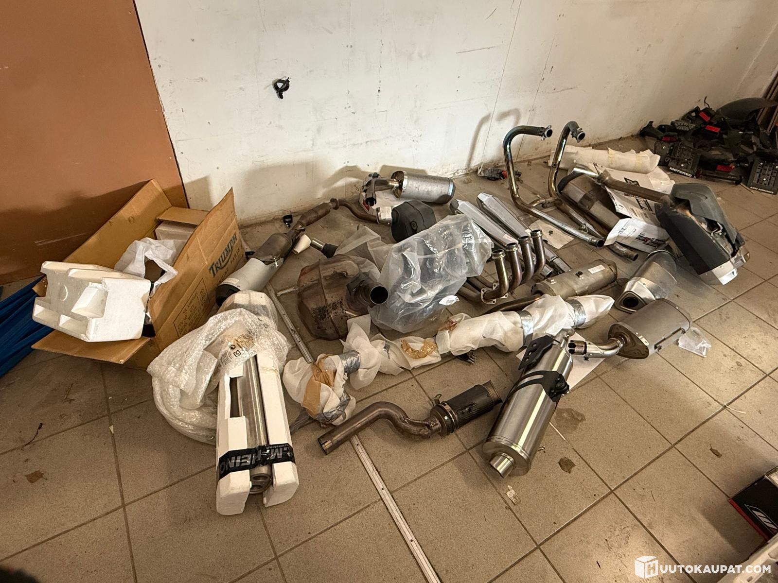 Iso läjä erilaisia äänenvaimentimia ja putkia! On Bemariin, Triumphiin, Kawasakiin yms. Kasa myydään vain kerrallaan.