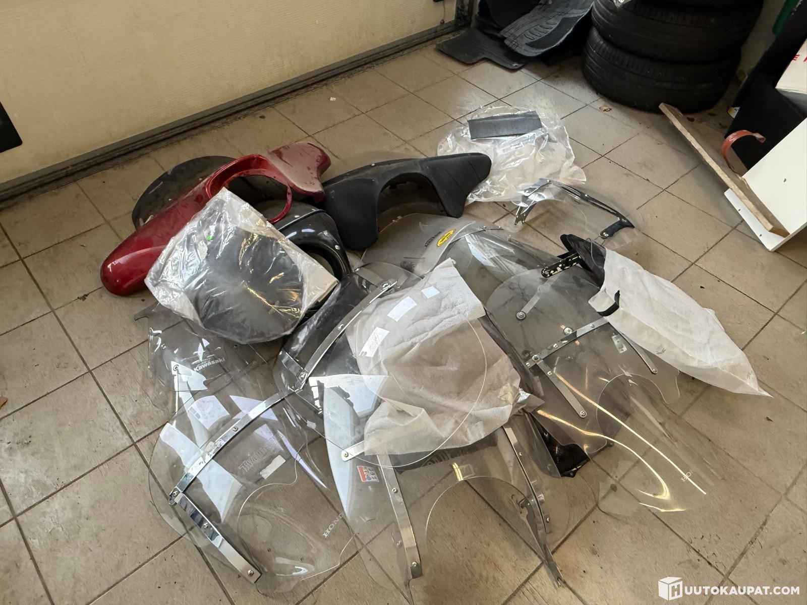 Todella iso kasa erilaisia pyörien visiireitä. Osa alkuperäisiä, osa korotettua tai madallettua. Myös muutama lepakkokate!