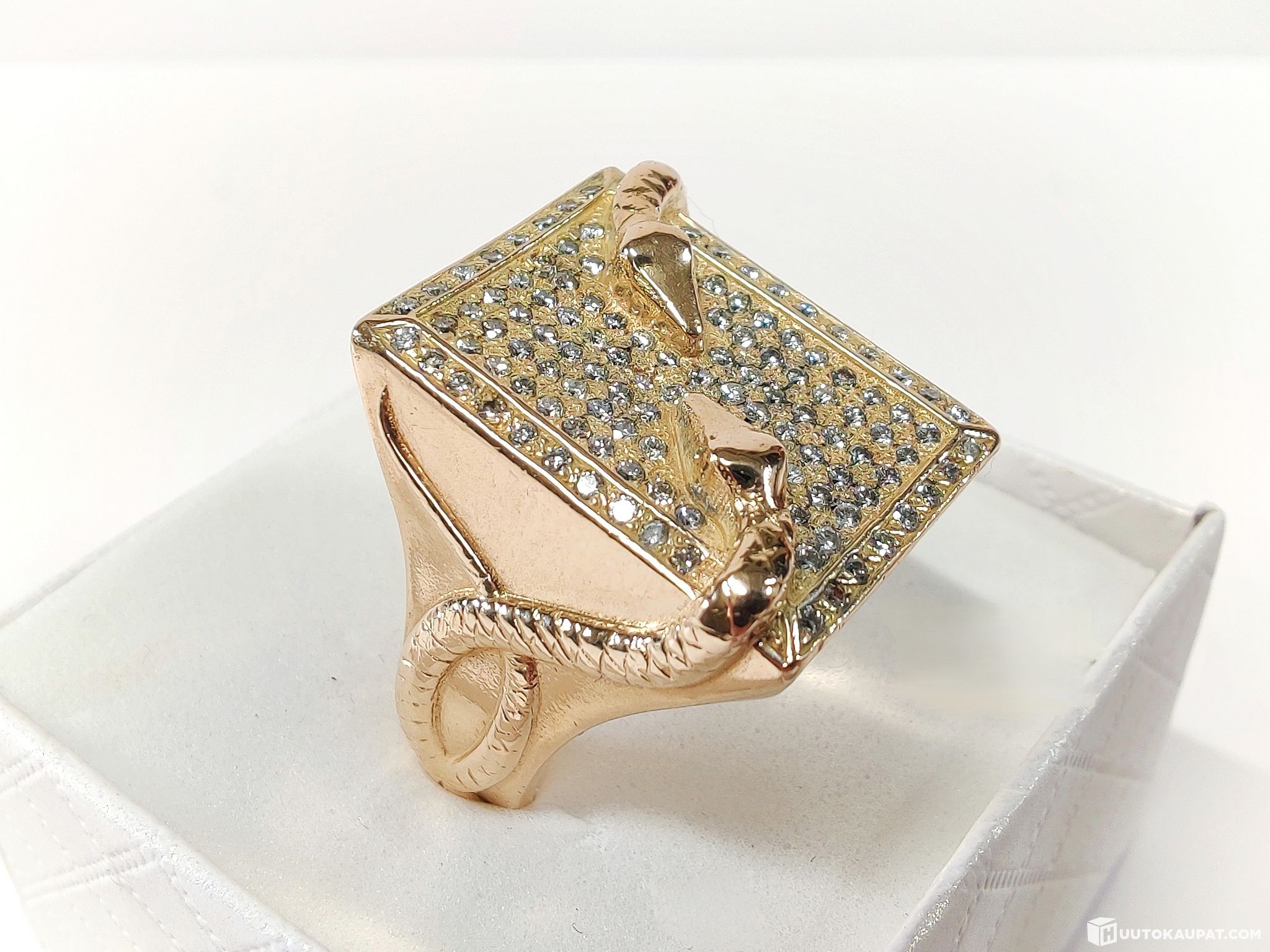 Kotimaisena käsityönä tehty magnum-koon timanttikantasormus "käärmeet" 585 14k kultaa. Näyttävyydessä aivan omaa luokkaansa!
