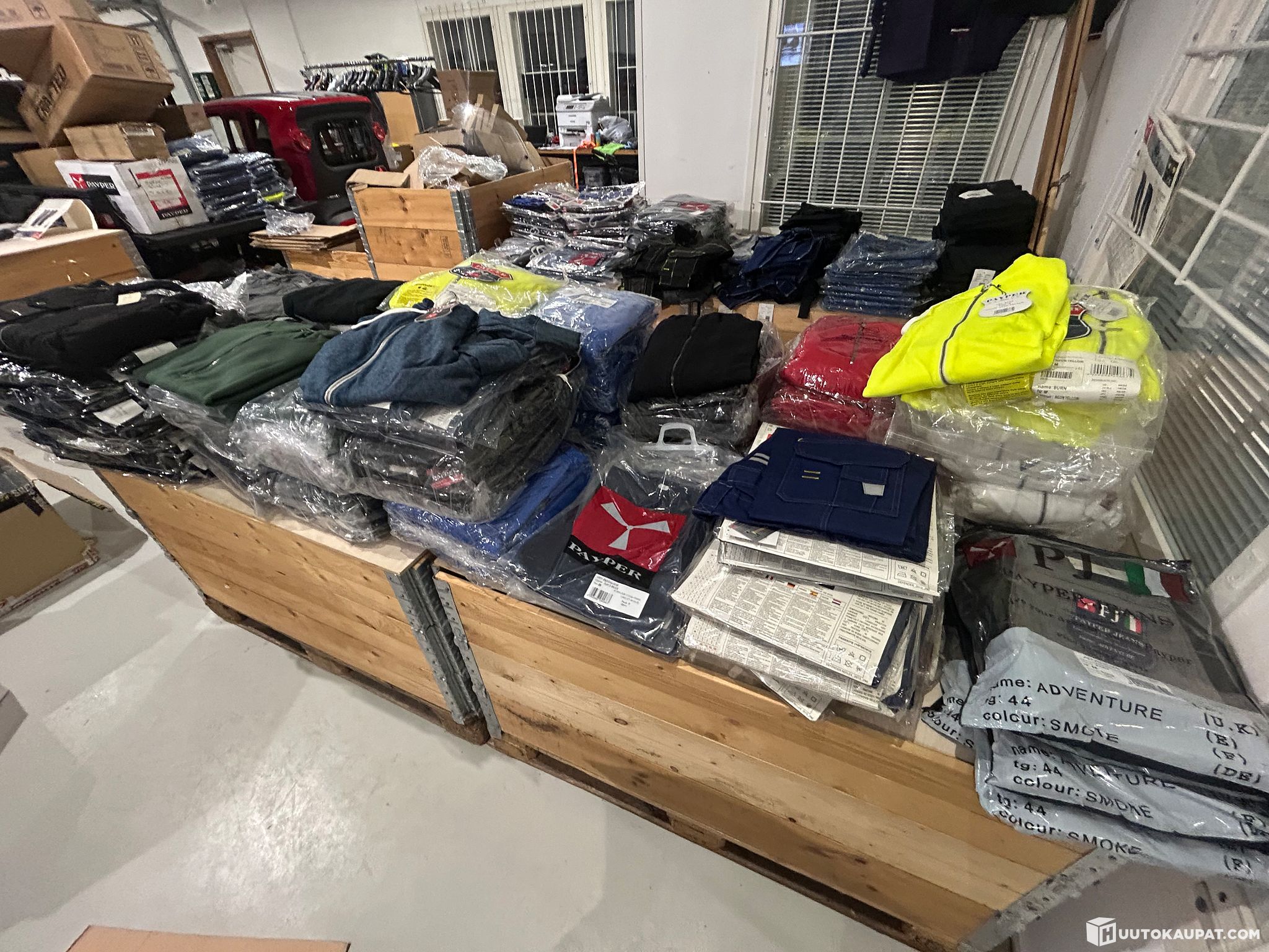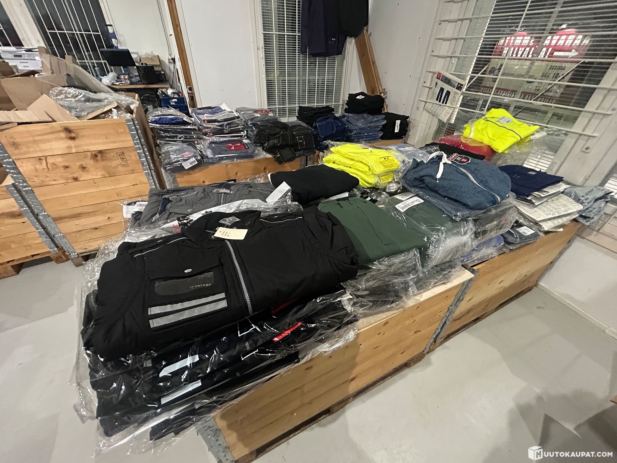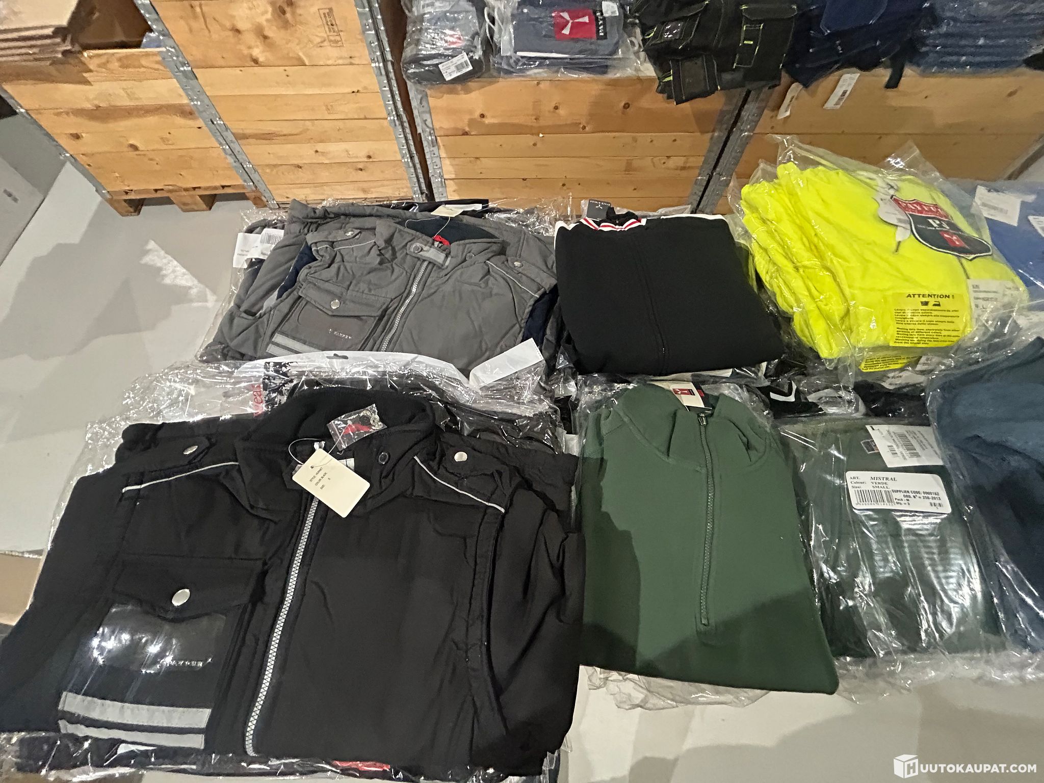 Myymälän 145kpl isoerä Työtakkeja puseroita huppareita koot: XS;S,M,L38-44 erän sh. reilu 7000€ ERÄ 1. jokainen lajitelma voi vaihdella huudoittain