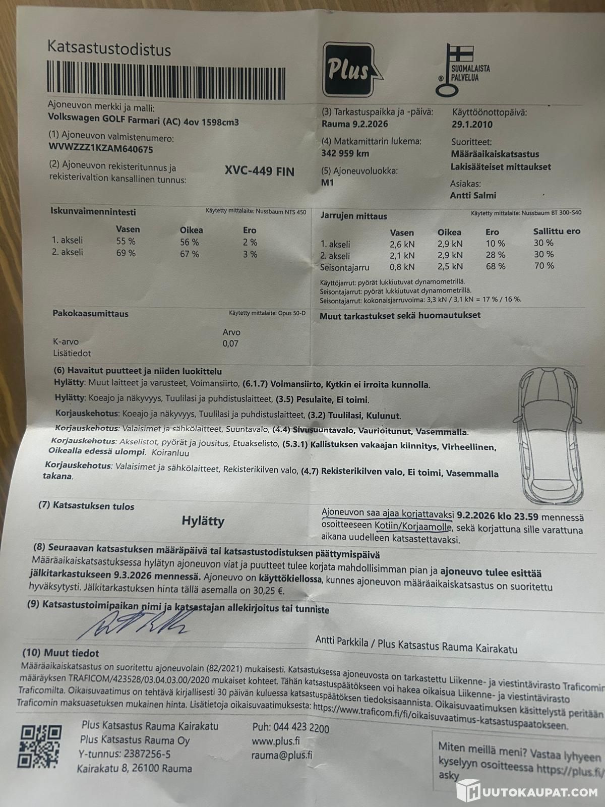 Tästä jollekin projekti Golffi mistä saa vielä hyvän auton itselleen. Katsastuksesta tuli hylky kytkimen takia ja parin muun pikkuasian (kuva ilmoituksessa).