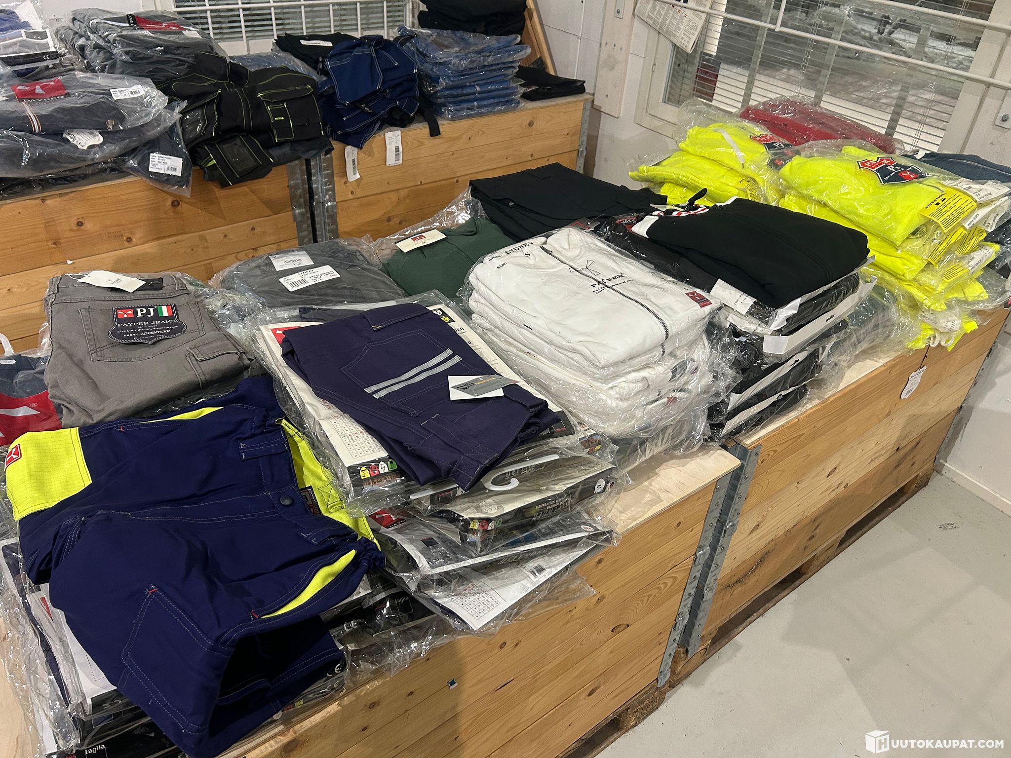 Myymälän 120kpl isoerä Leijona Payperwear huppareita avohaalareita työhousuja gollegeja koot: XS;S,M,L38-44 erän sh. reilu 7000€ ERÄ 2.jokainen lajitelma voi vaihdella huudoittain