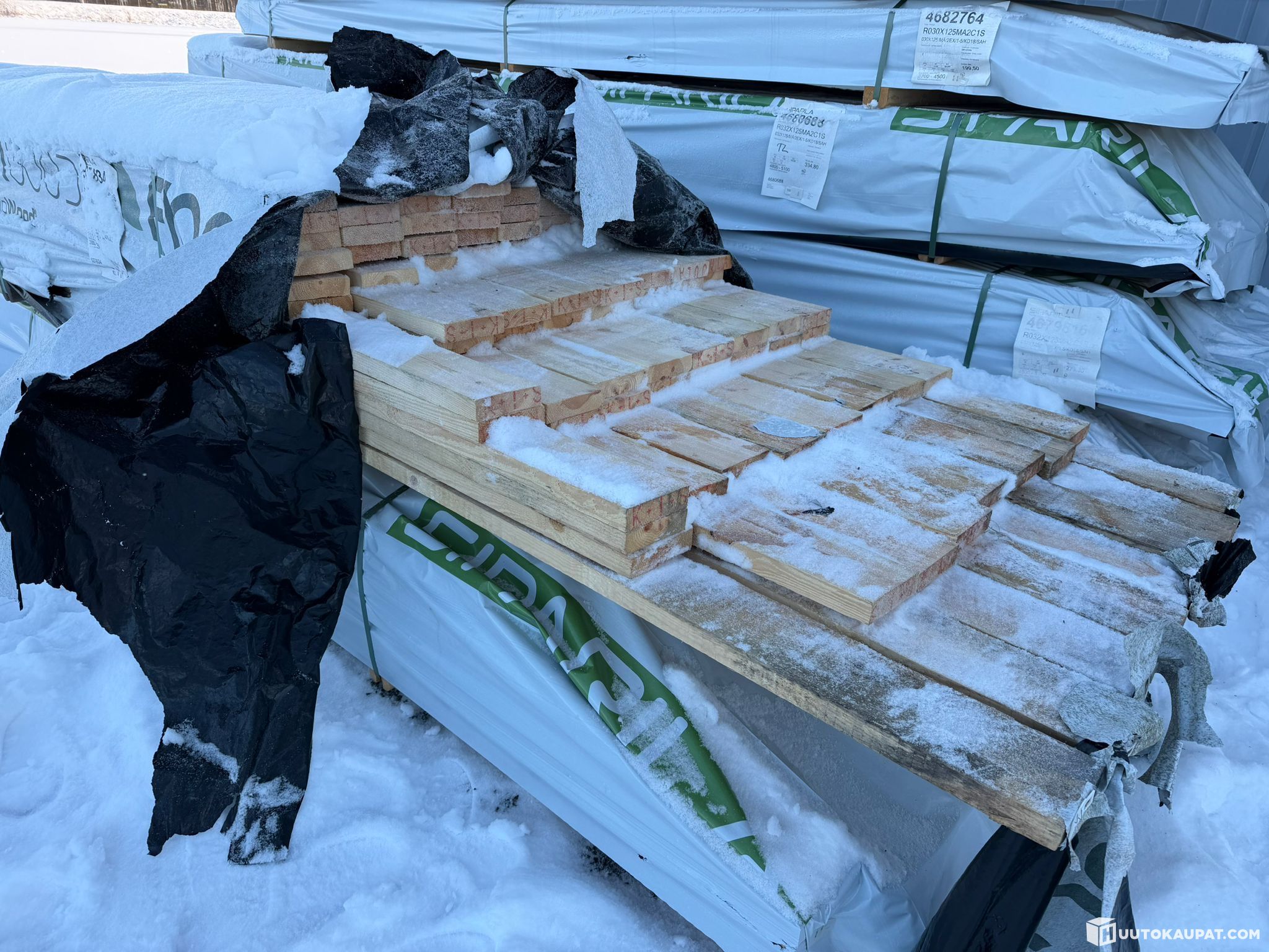 Monikäyttöistä sahatavaraa tehtaan paketissa.