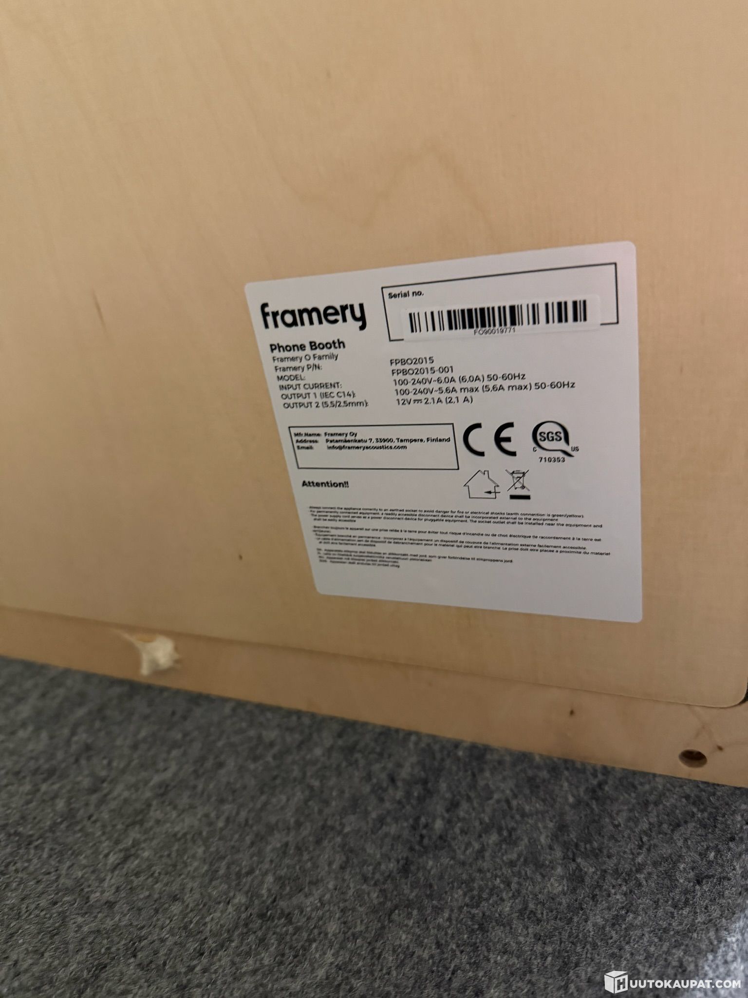 Varaathan noutoon riittävän kuljetuskaluston, työkalut ja työvoiman. Ostaja on velvollinen purkamaan mahdolliset sähkö- ja vesiliitännät. Konkurssipesän puolesta paikalla ei ole työkaluja tms.