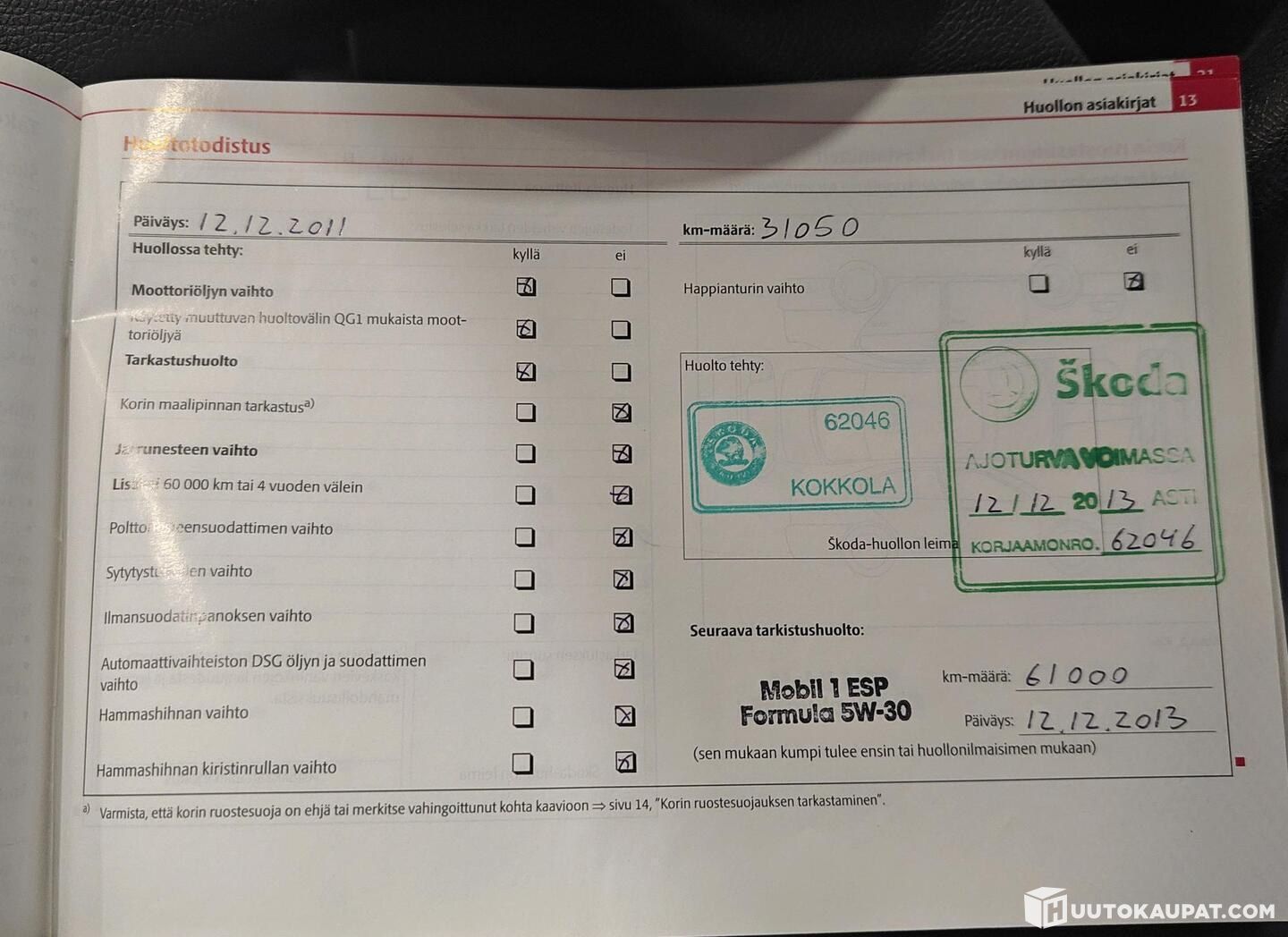 Huoltohistoria (tositteet tehdyistä huolloista)