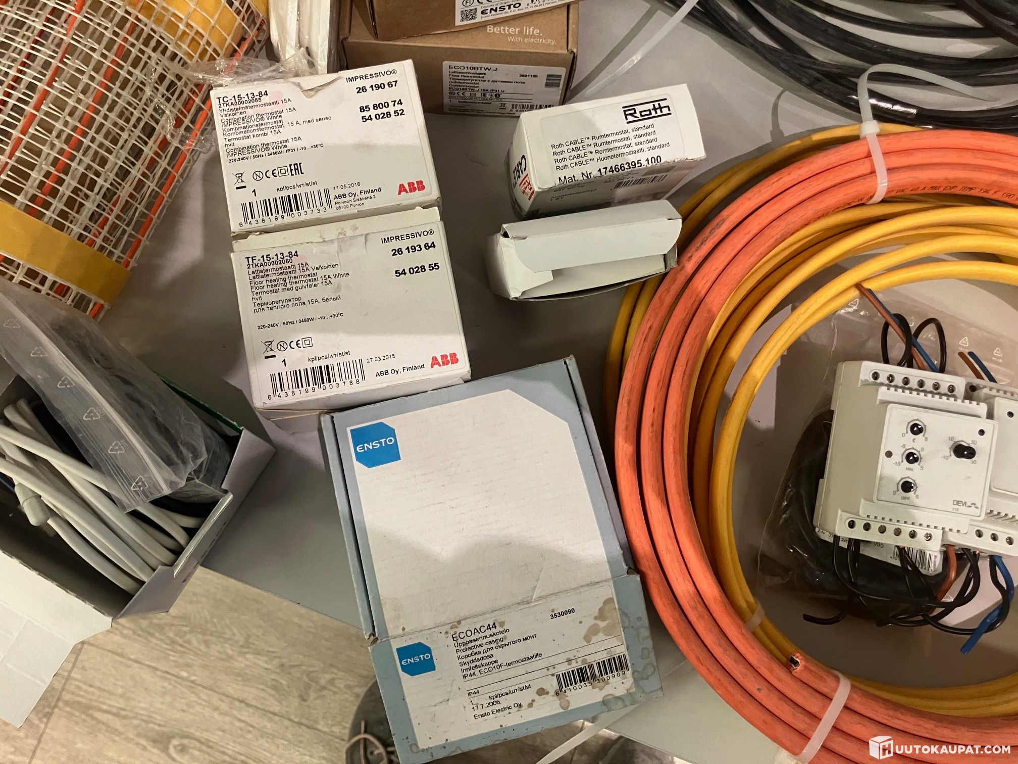 Käytöstä purettuja putkistokaapeleita ei ole testattu eikä mitattu, ensto ECO16BT-J termostaateista puuttuu säädin nupit (voi vaihtaa vanhoista).