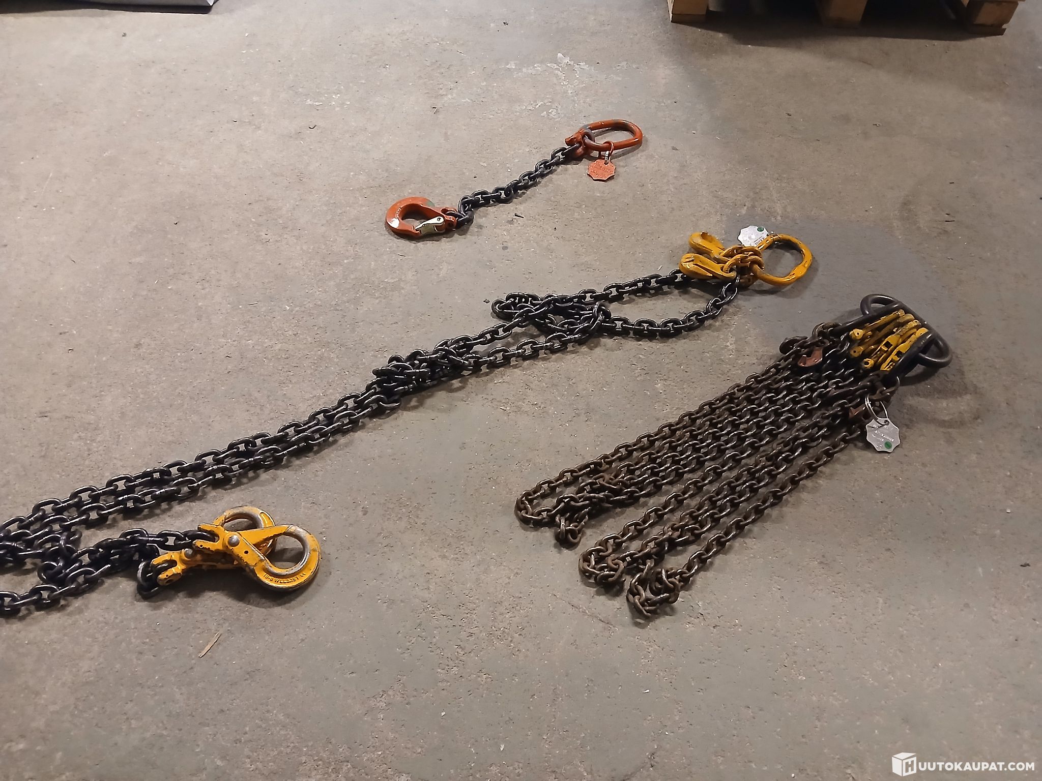 Nostoketjuja 3kpl, eri pituuksia ja eri työkuormille. Tarkastukset ei voimassa.