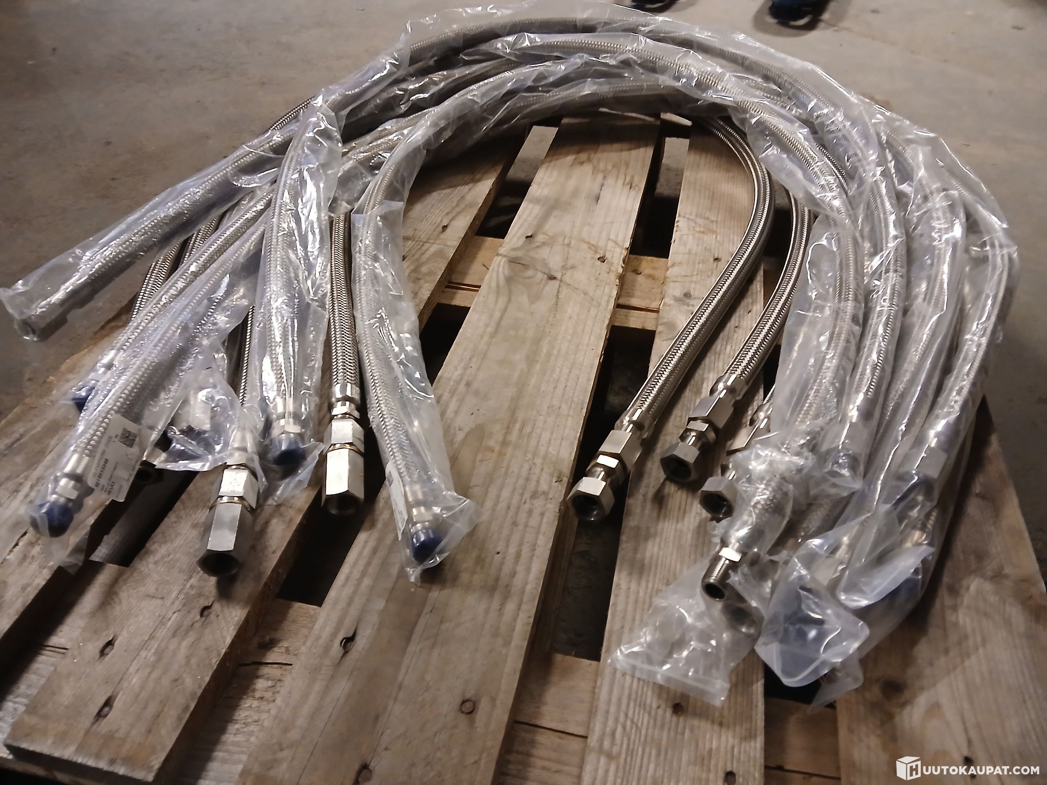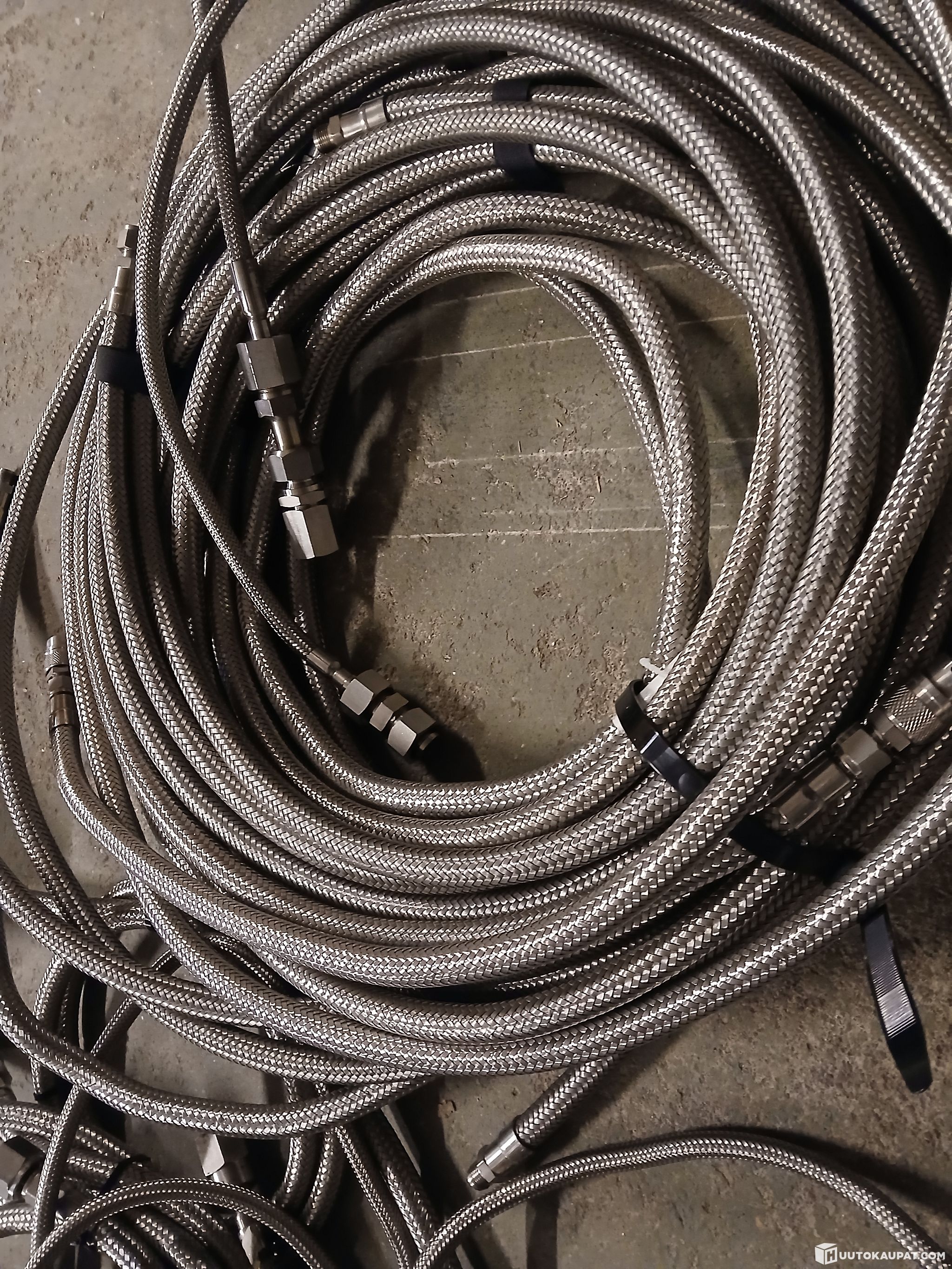 Metallipunosletkuja mittaukseen/testaukseen. Letkujen päissä kierteet, pääosin M20x1.5 ja G1/2 sekä helmiliitos (Swagelok)