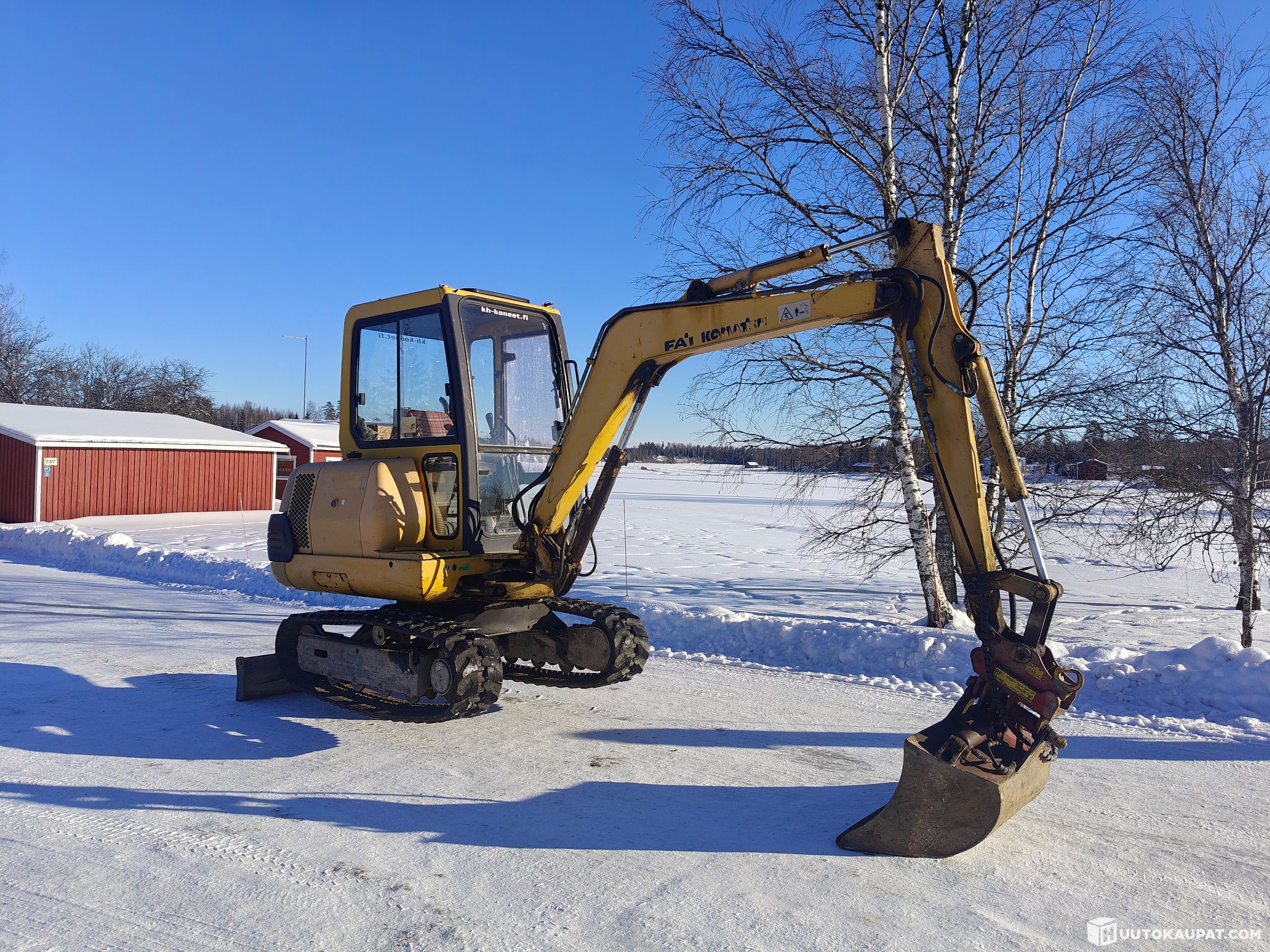 Huutokaupataan kuvien mukainen pieni ja ketterä Komatsu! Hyvä kone vaikka omien pihojen muokkauksiin. Voimat tallela! Tästä kone vaikka heti töihin!