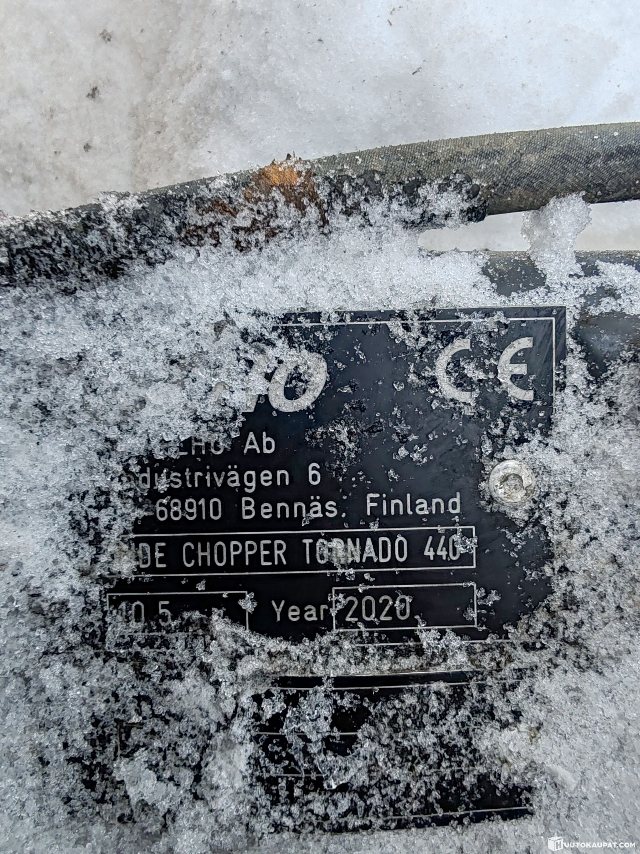 Huutokaupataan asiakkaan toimeksiantona vuosimallia 2020 oleva Elho Tornado 440 ketjumurskain uuteen kotiin.