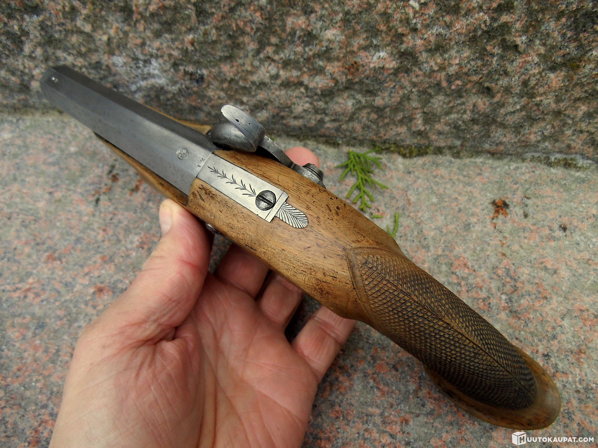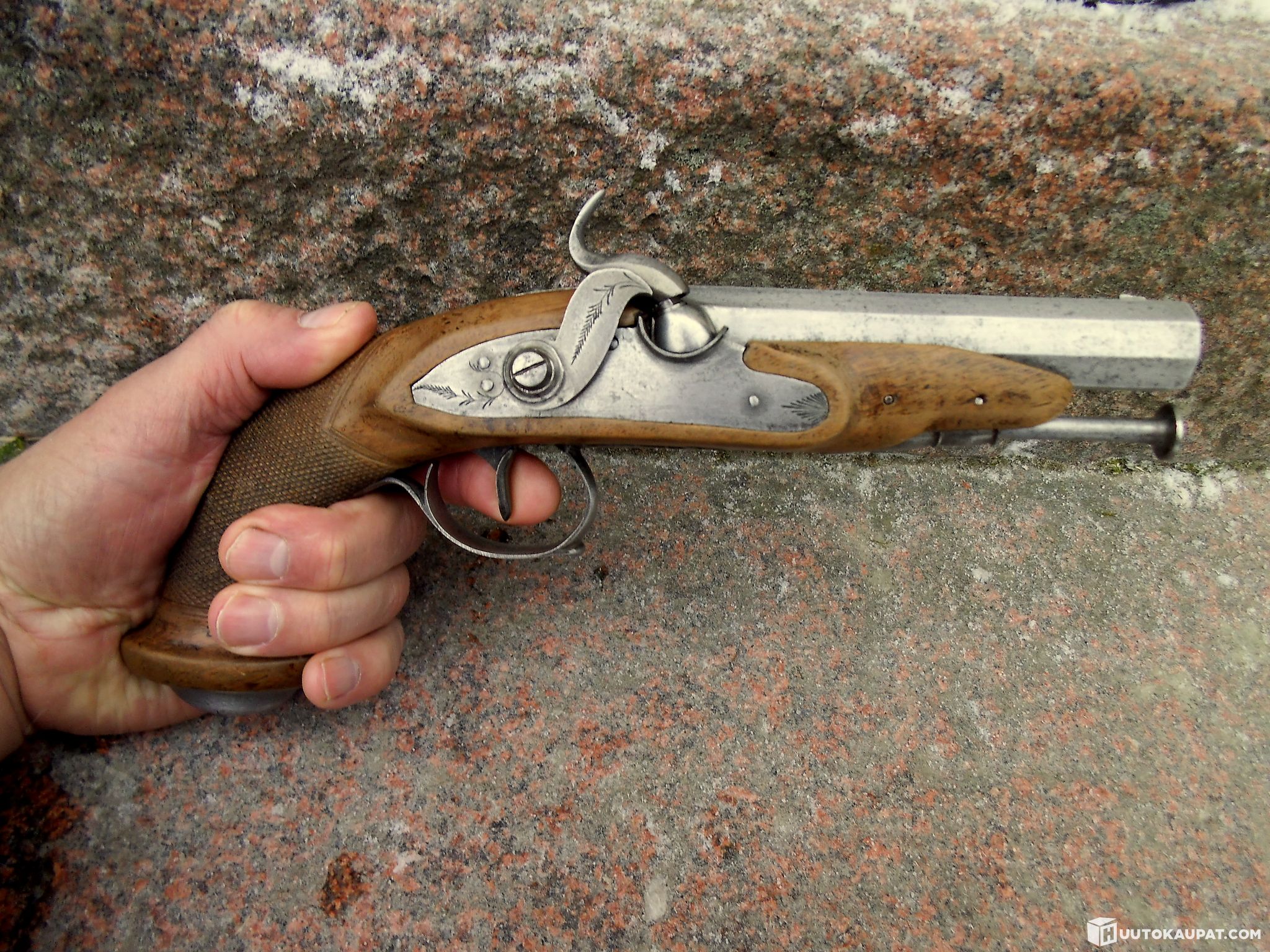 Kokoelmasta hieno ja kysytty nallilukkopistooli noin 1860 v.