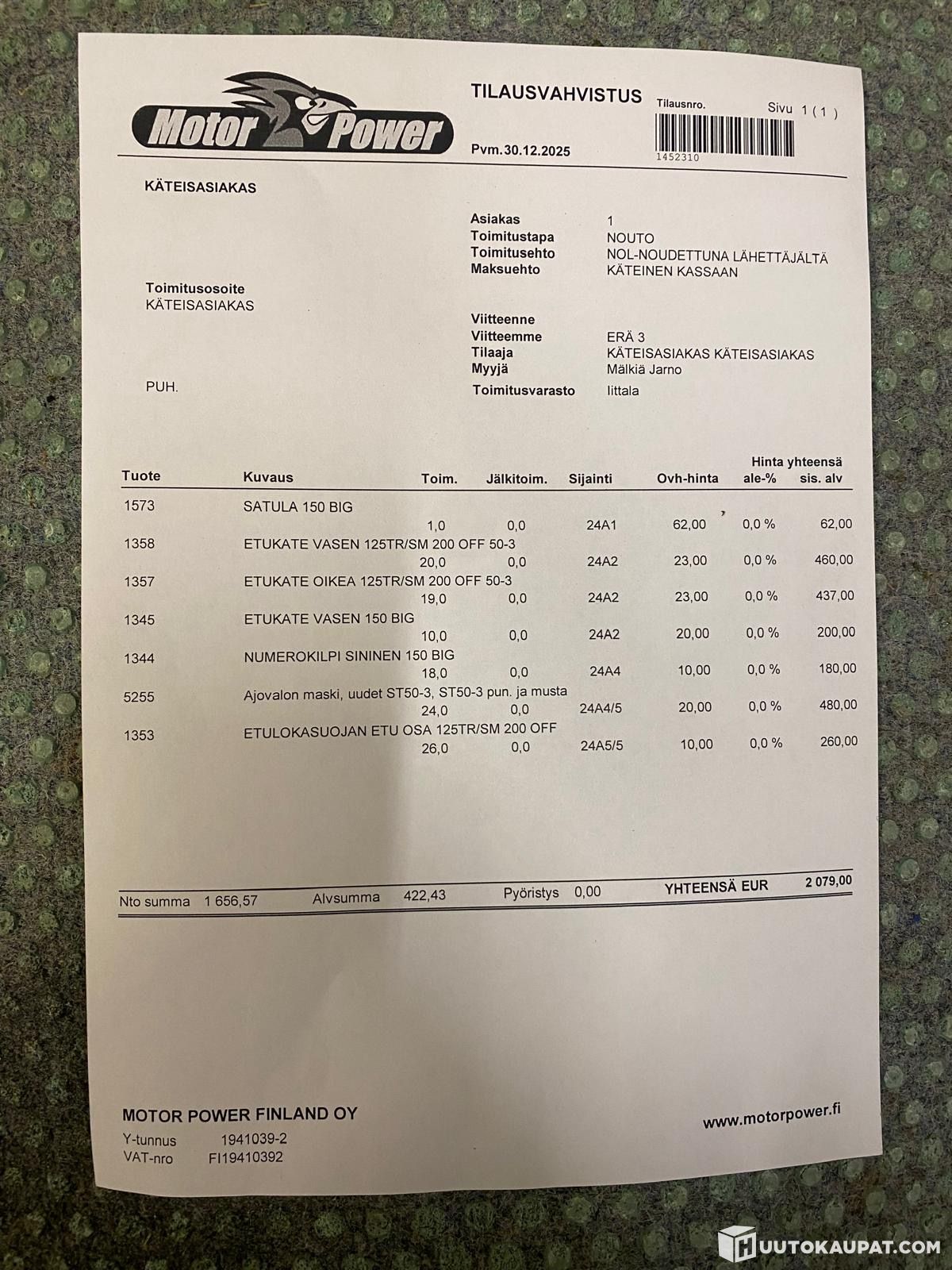 Tämän kohteen myyjä on Huutokaupat.com. Moottorivetäjät antaa Huutokaupat.comin puolesta kohteesta lisätietoja ja vastaa kohteen luovutuksesta. Kohde tulee aina maksaa Huutokaupat.com-sivustolla olevien verkkomaksupainikkeiden kautta tai Huutokaupat.comin laskulla. Jos kohdetta ei makseta Huutokaupat.comille, Huutokaupat.com ei hyväksy mitään vastuuta kaupasta.