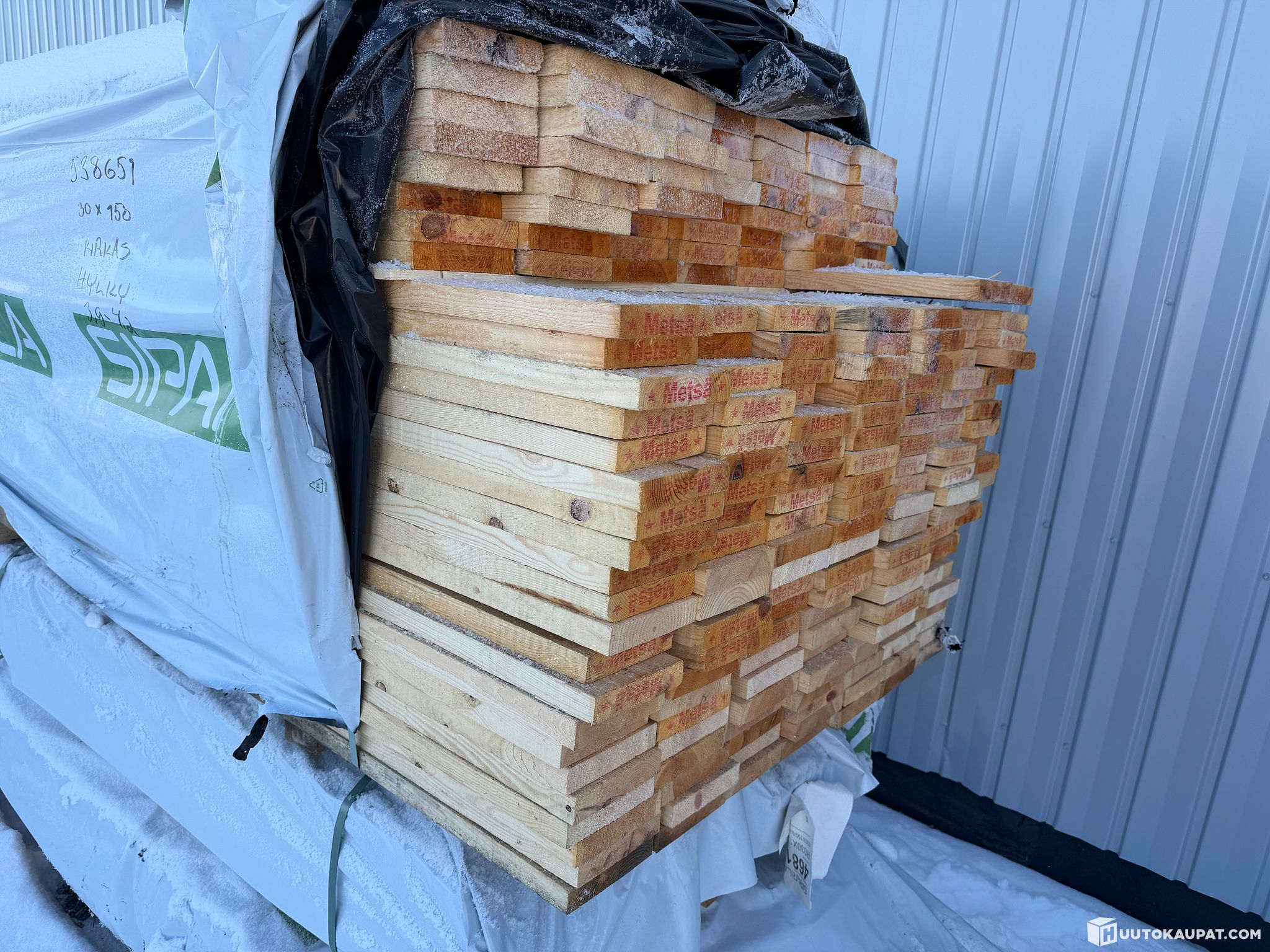 Monikäyttöistä sahatavaraa tehtaan paketissa.
