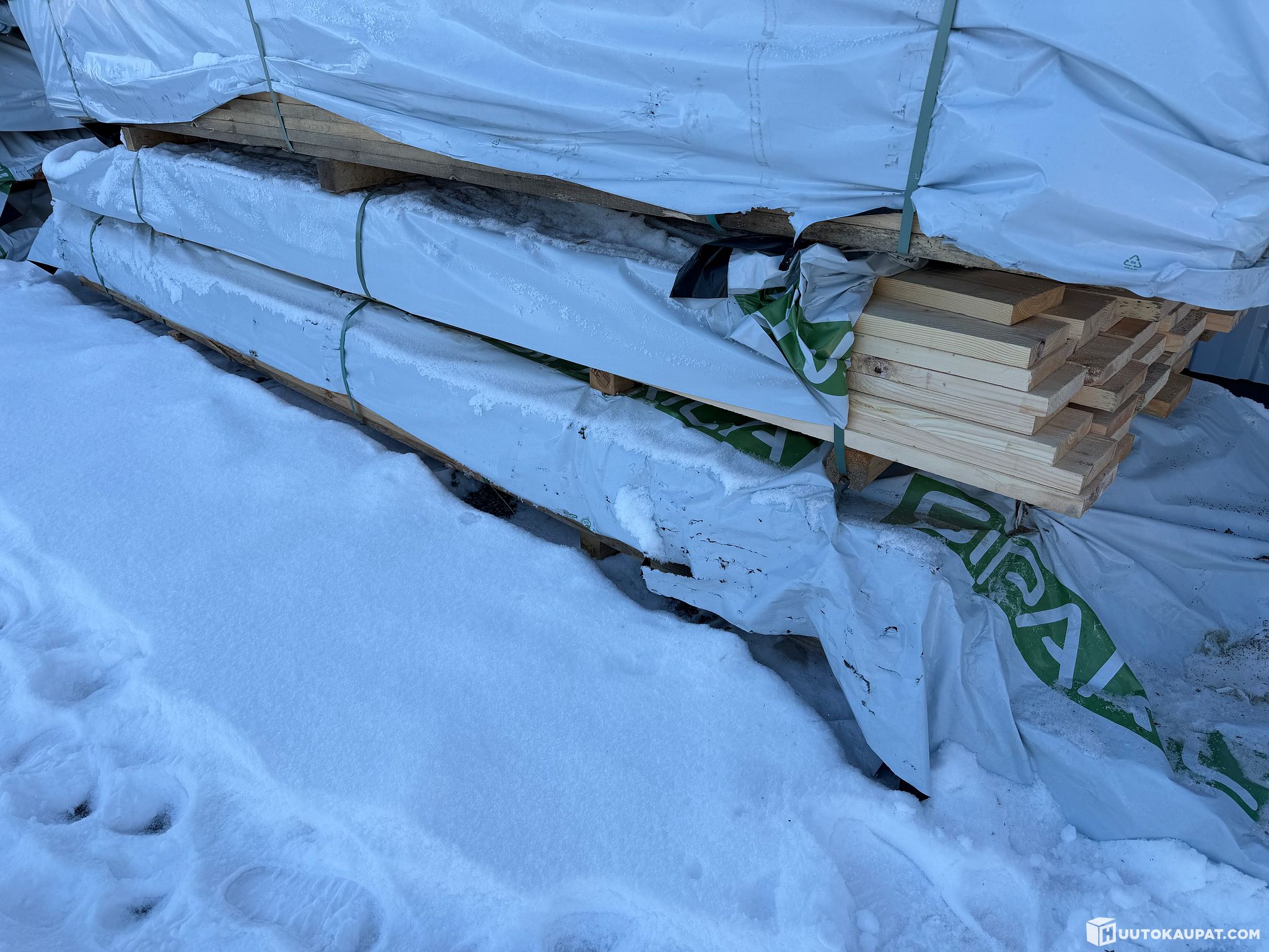 Monikäyttöistä sahatavaraa tehtaan paketissa.