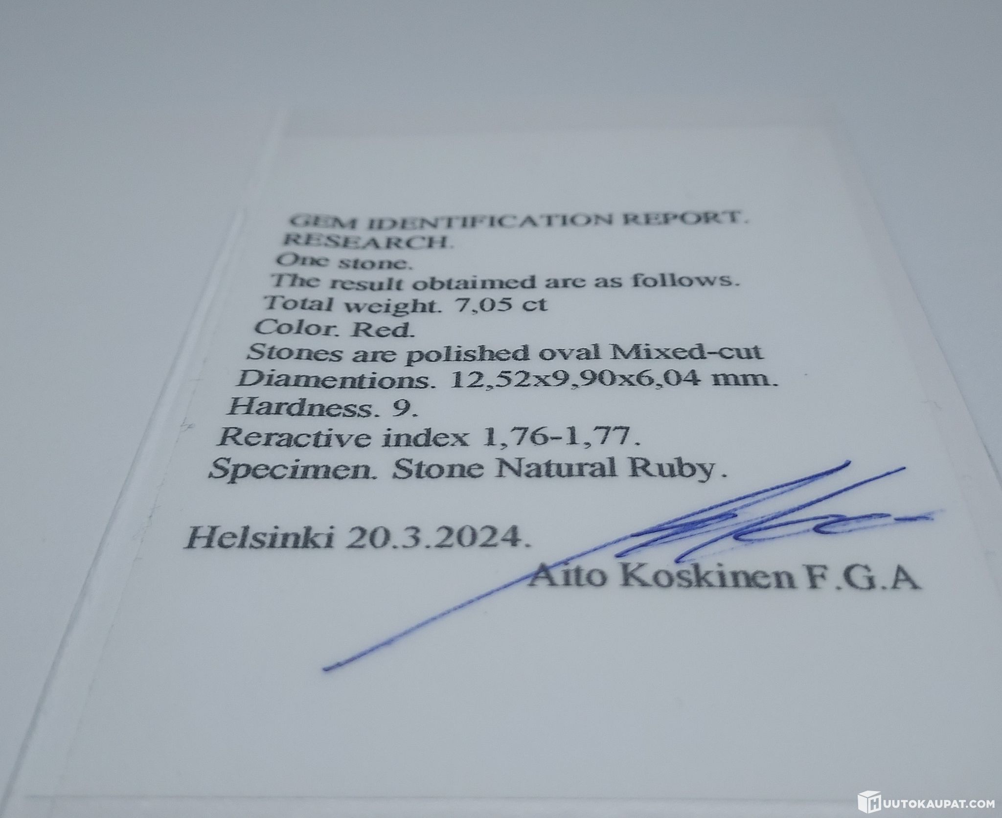 Rubiini on käyttämätön. Toimitetaan postitse vakuutettuna.