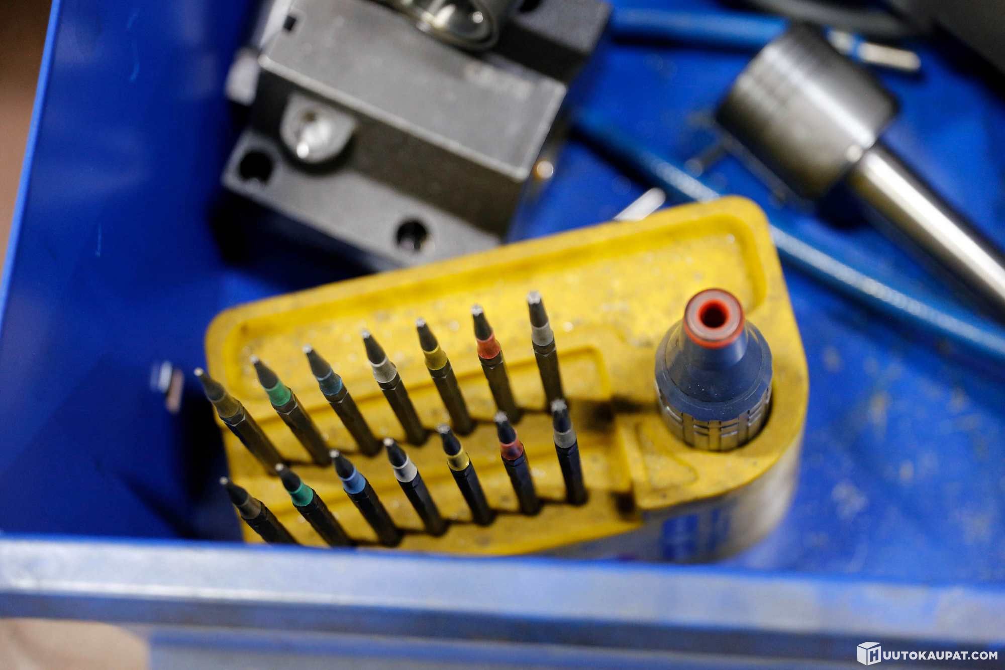 Koneen mukana tulee laaja työkalupaketti: