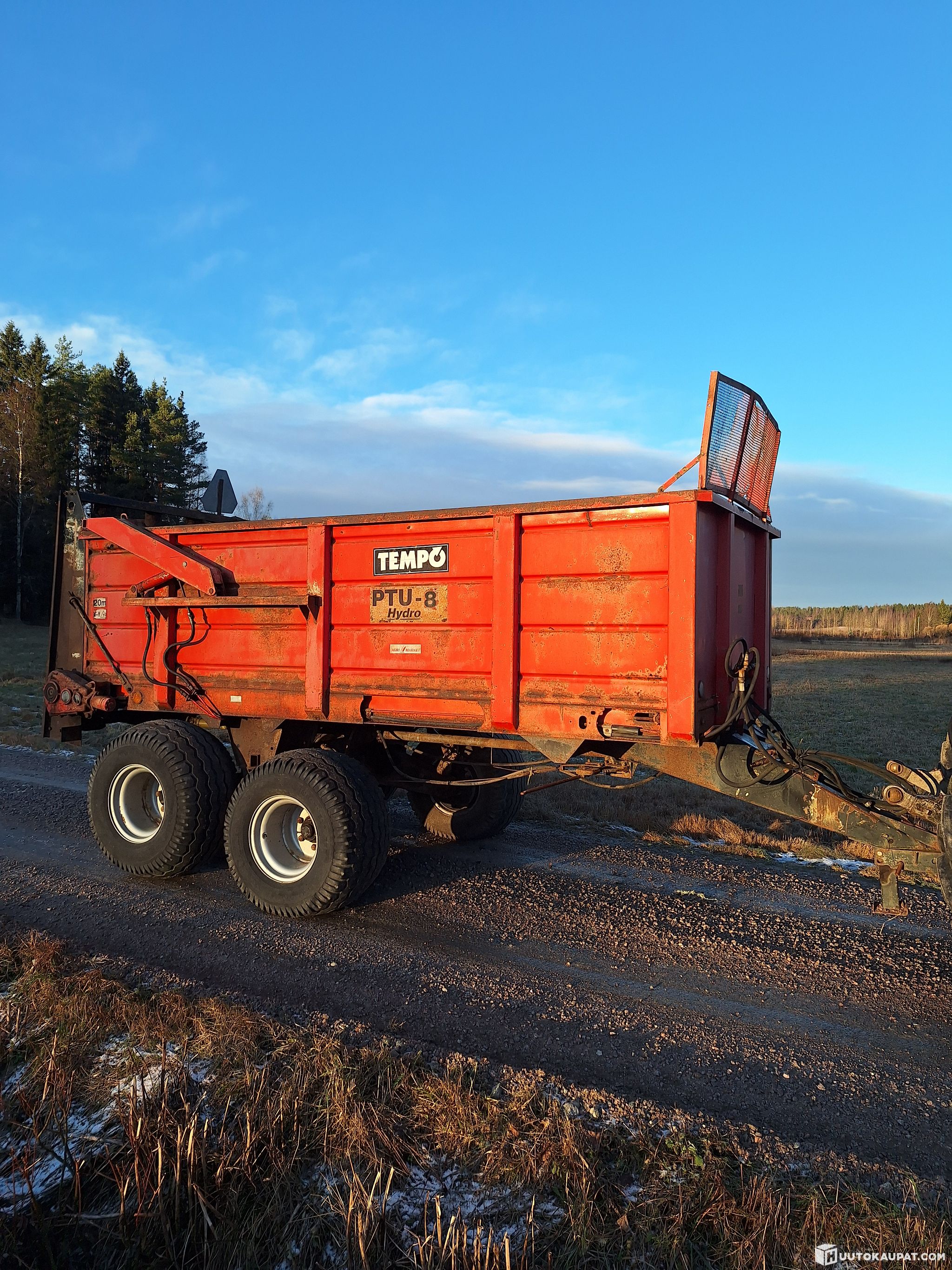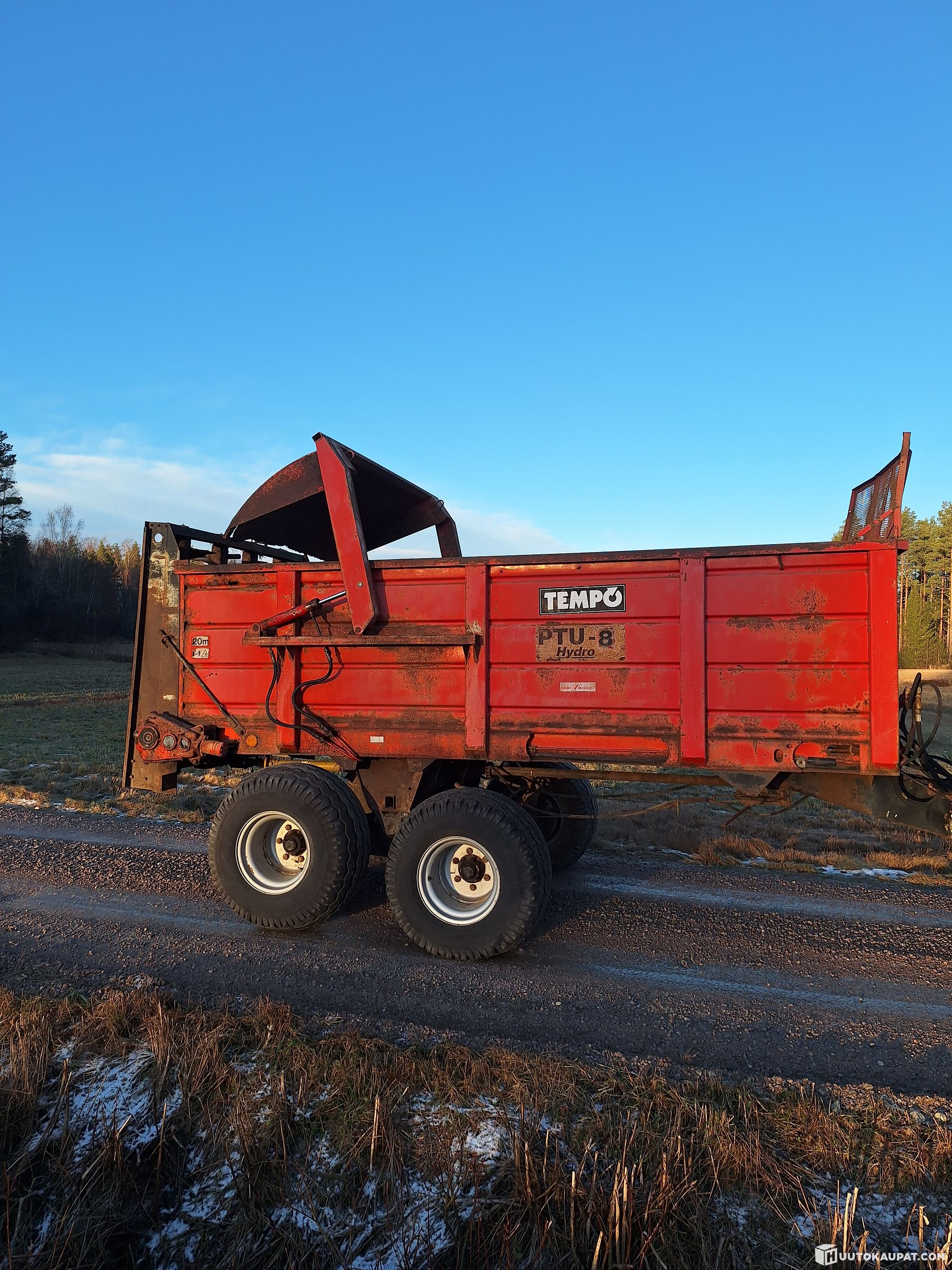 2002 vuosimallin tempo ptu 8 hydro. Vaatii uudet kolaketjut, näitä saatavilla. Pohjassa hapan vikaa. Pohjakuljetin pyörii (hydraulinen) purkuperä pyörii myös hienosti. 500mm.set renkaat. Hydraulinen takalaita.