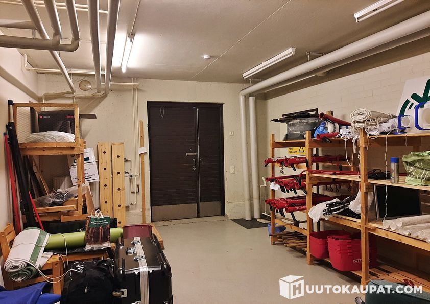 Toimistohuoneistossa on kokoustila/neuvotteluhuone minikeittiöllä, 10 kpl toimistohuoneita, 2 kpl wc/ pukuhuoneita, odotusaula ja käytävä. Varastotilaan on erillinen sisäänkäynti ja kulku myös sisäkautta toimistotiloista. Kaupan kohteena on 230 kpl kpl toimistohuoneiston hallintaan oikeuttavia osakkeita, 11 kpl arkistohuoneen hallintaan oikeuttavia osakkeita ja 30 kpl varastohuoneen hallintaan oikeuttavia osakkeita.