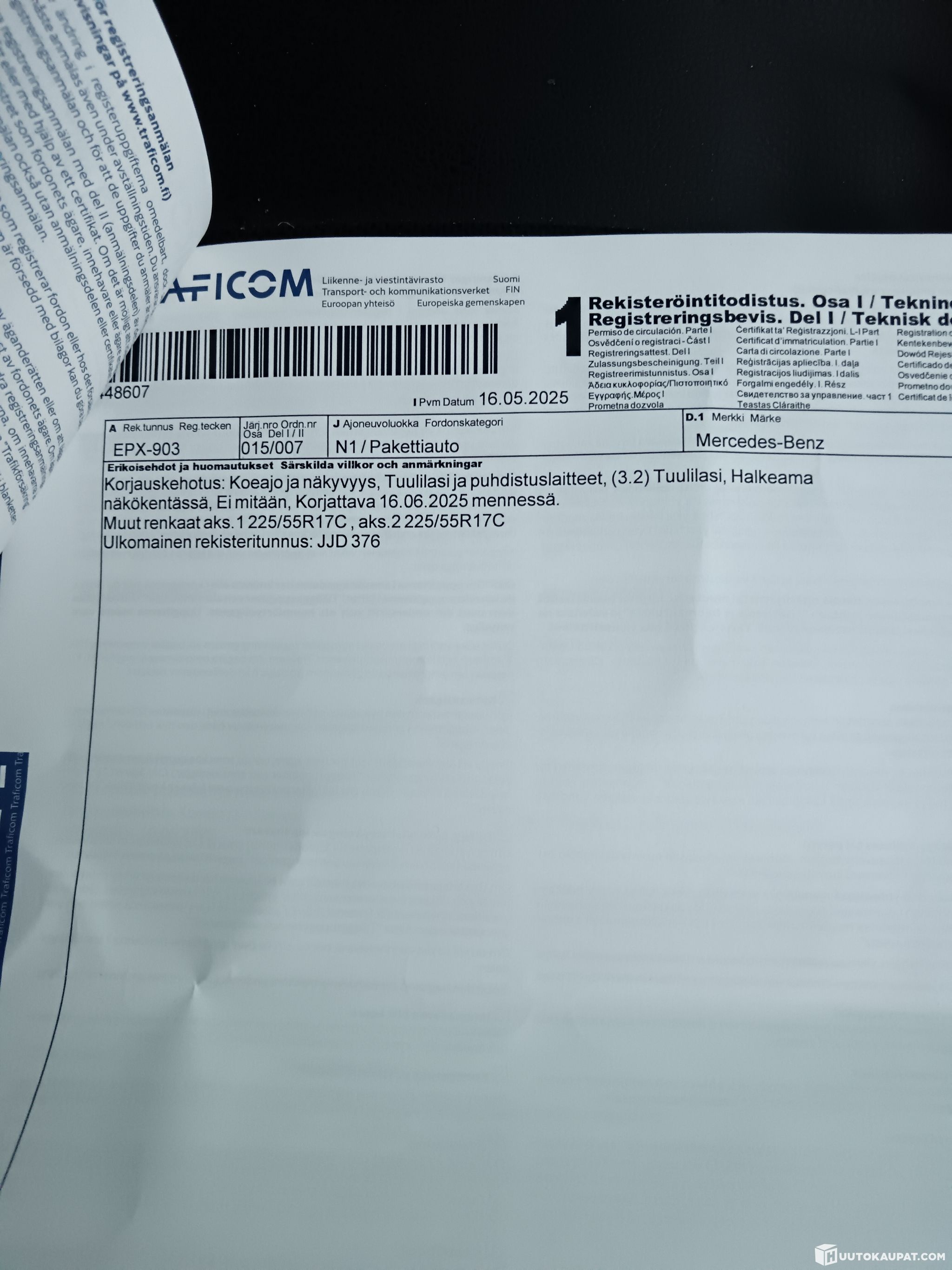 Ajoneuvo noudettava 7vrk kuluessa huutokaupan päättymisestä ellei toisin sovita -Huutokaupat.com.