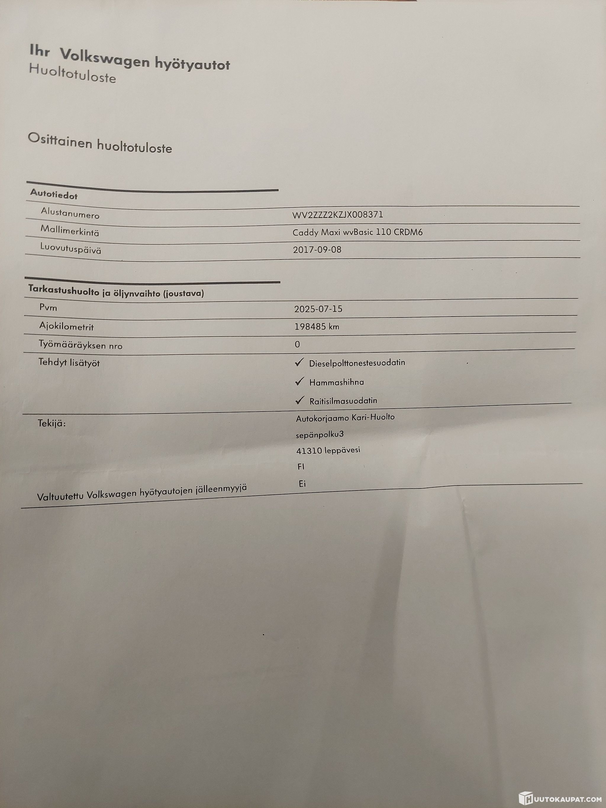 Tämän kohteen myyjä on Huutokaupat.com. Käyttöauto Oy antaa Huutokaupat.comin puolesta kohteesta lisätietoja ja vastaa kohteen luovutuksesta. Kohde tulee aina maksaa Huutokaupat.com-sivustolla olevien verkkomaksupainikkeiden kautta tai Huutokaupat.comin laskulla. Jos kohdetta ei makseta Huutokaupat.comille, Huutokaupat.com ei hyväksy mitään vastuuta kaupasta.