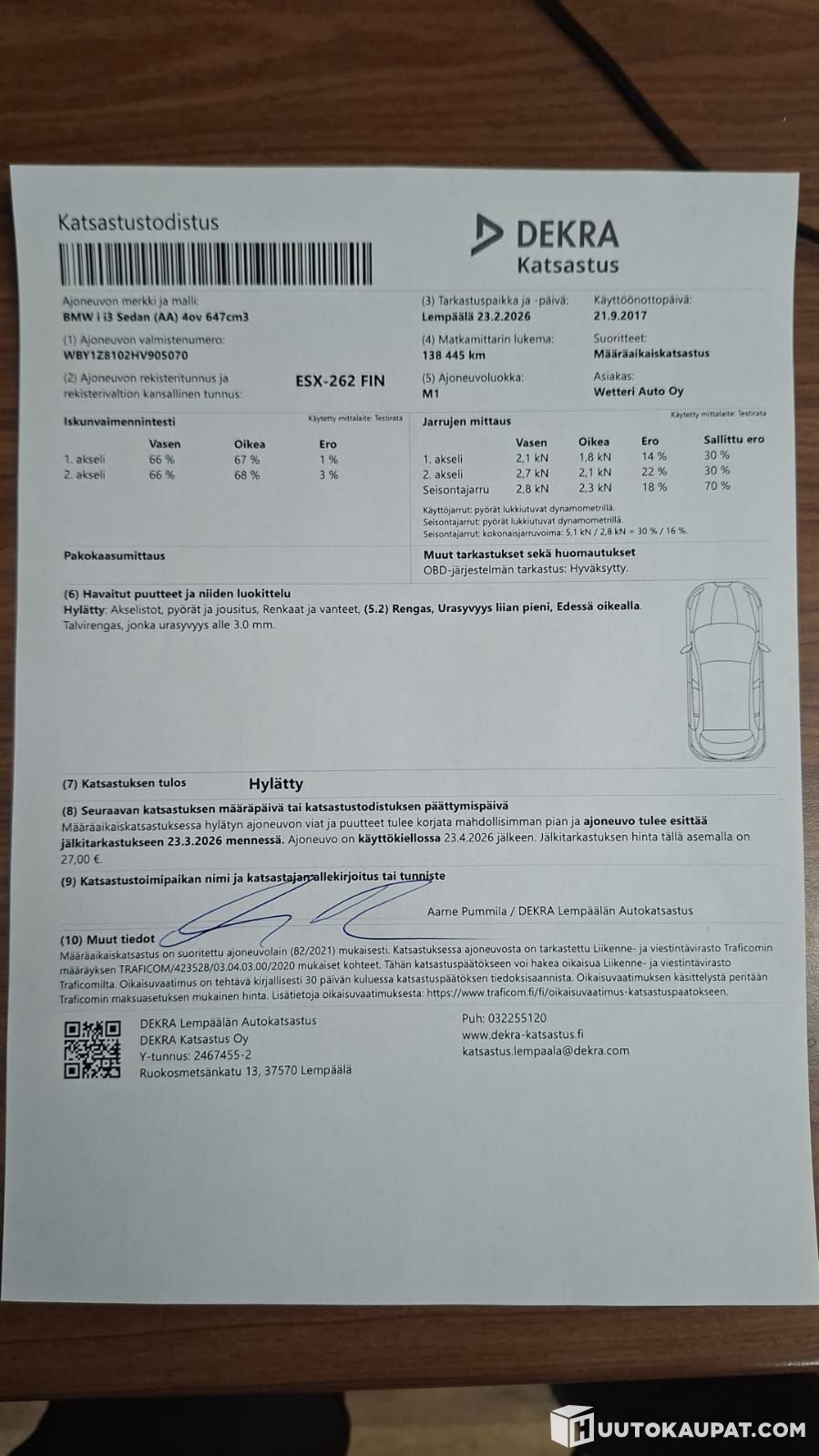 Tästäpä BMW i3 seuraavalle. Auto ikäisekseen siistissä kunnossa, niin sisältä kuin ulkoa (kts.kuvat). Kaikki tuntuu pelaavan autossa niin kuin pitää. Auto käytetty katsastuksessa puolestamme ja pomppasi talvirenkaista eli nämä pitäisi uusia. Akkutesti myös tehty (kts.liite!)